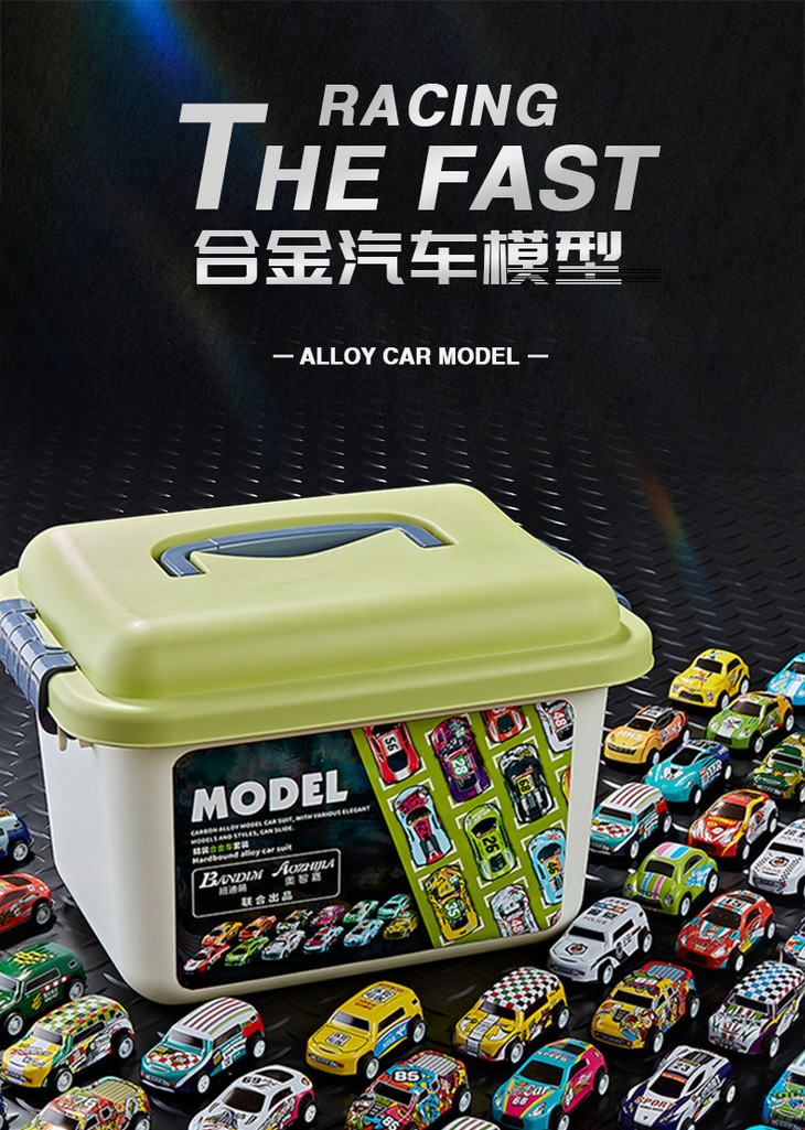 「抖音同款!100辆桶装」 儿童合金小汽车玩具车套装1:64回力惯性仿真铁皮回力车收纳盒套装