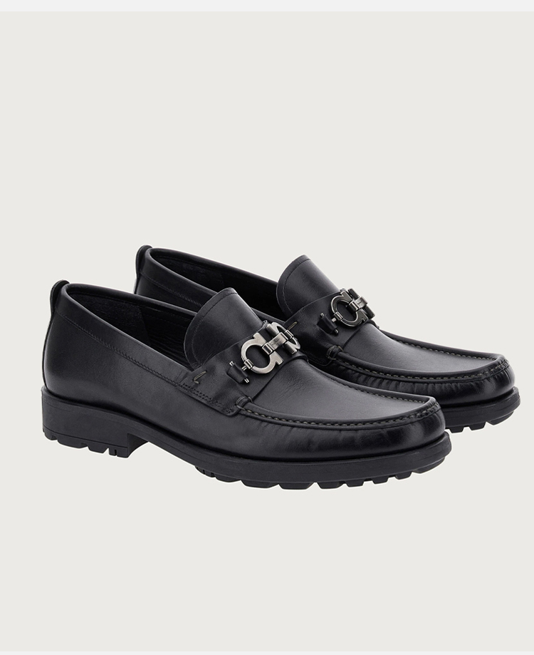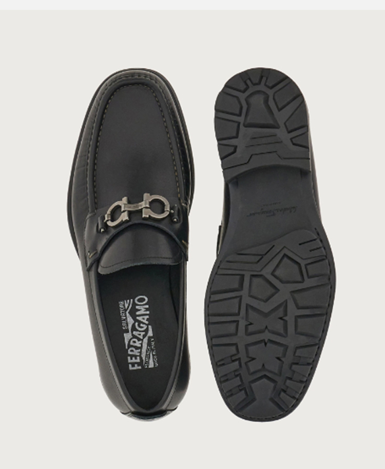【二】FERRAGAMO 菲拉格慕 男士皮革 GANCIO扣饰 乐福鞋 黑色 671792