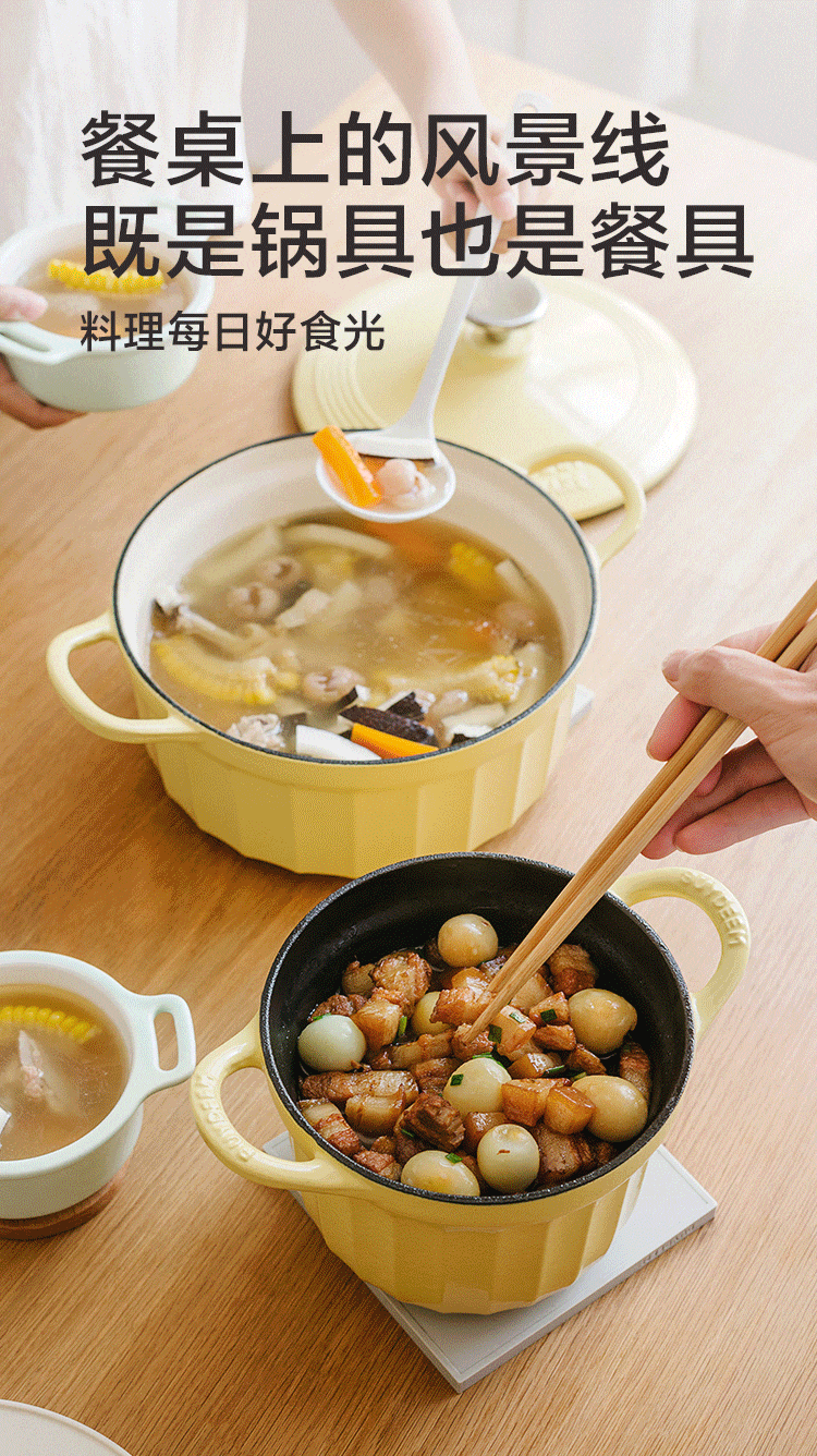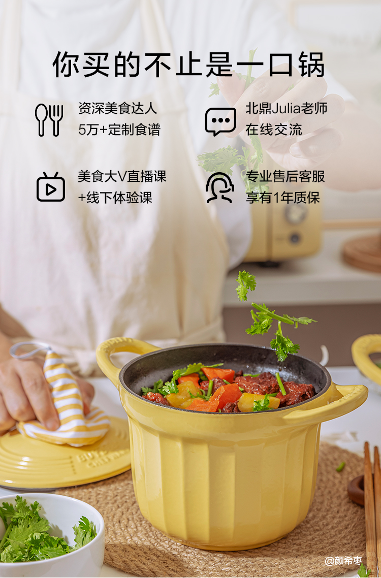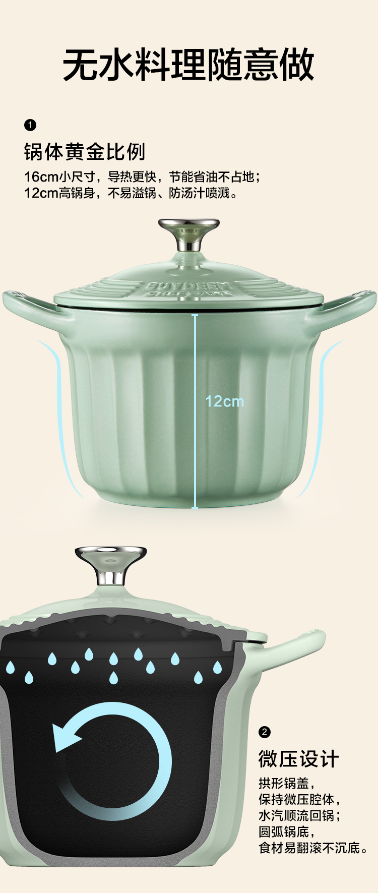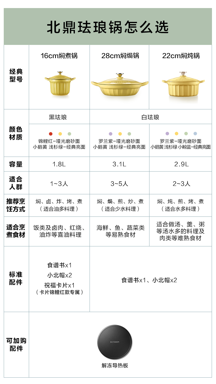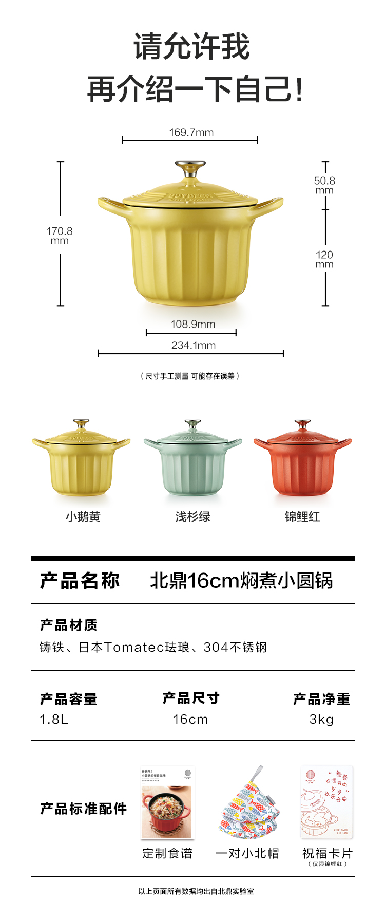 北鼎16CM焖煮锅铸铁珐琅锅家用多功能炖锅迷你小圆锅煮粥