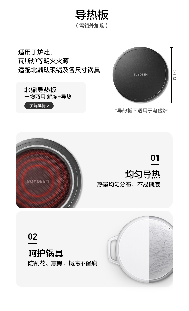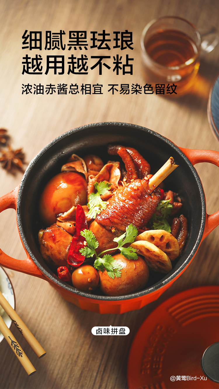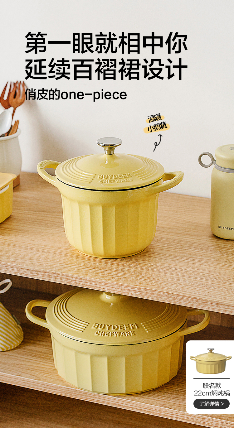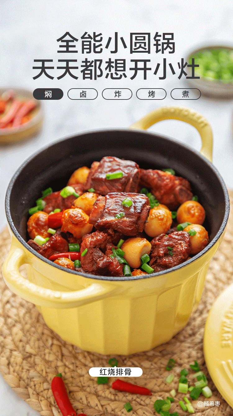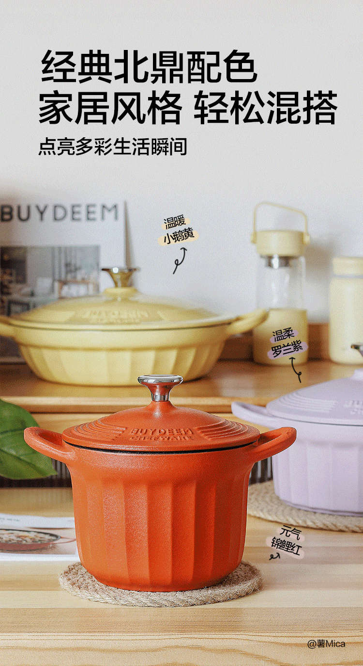北鼎16CM焖煮锅铸铁珐琅锅家用多功能炖锅迷你小圆锅煮粥
