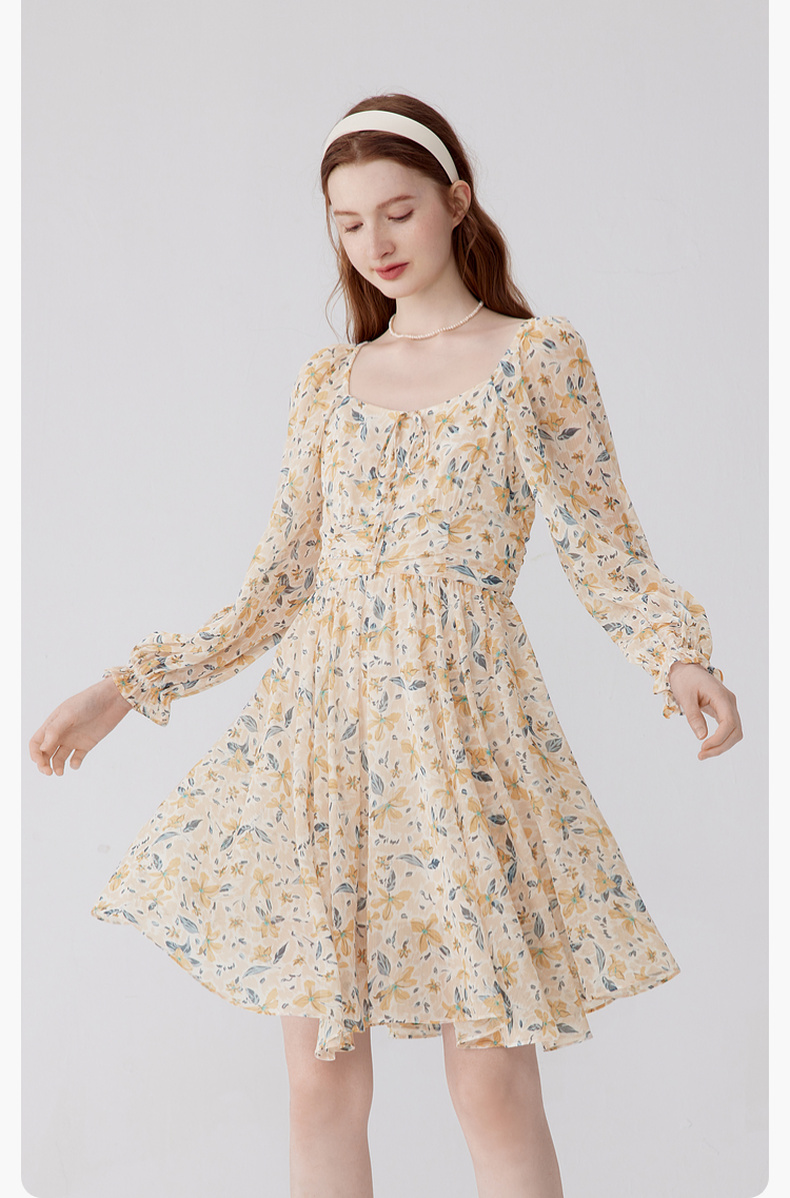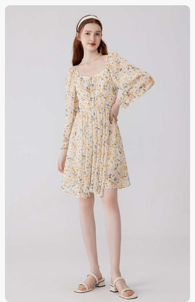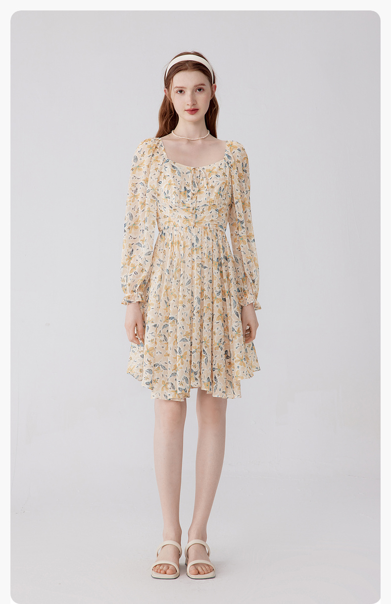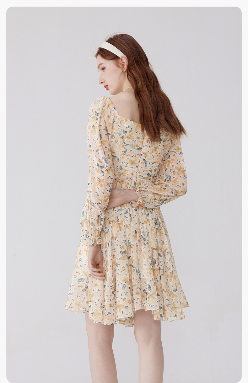 【严选】诗凡黎秋优雅花版精灵风不规则下摆连衣裙7E7292081