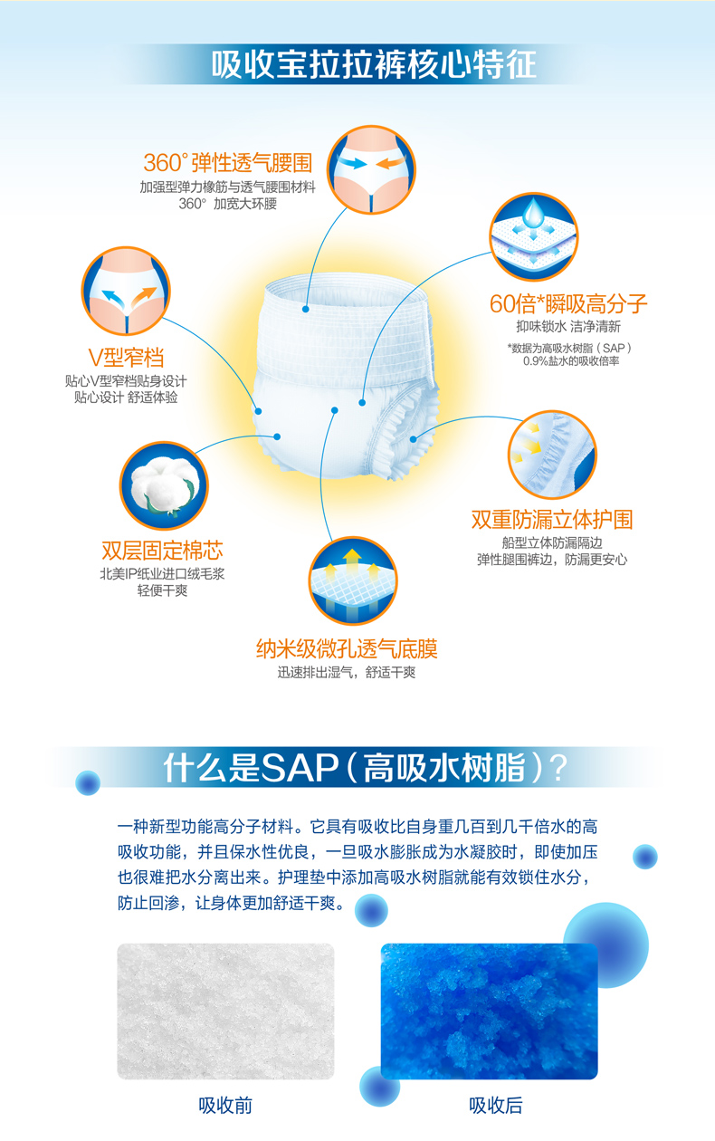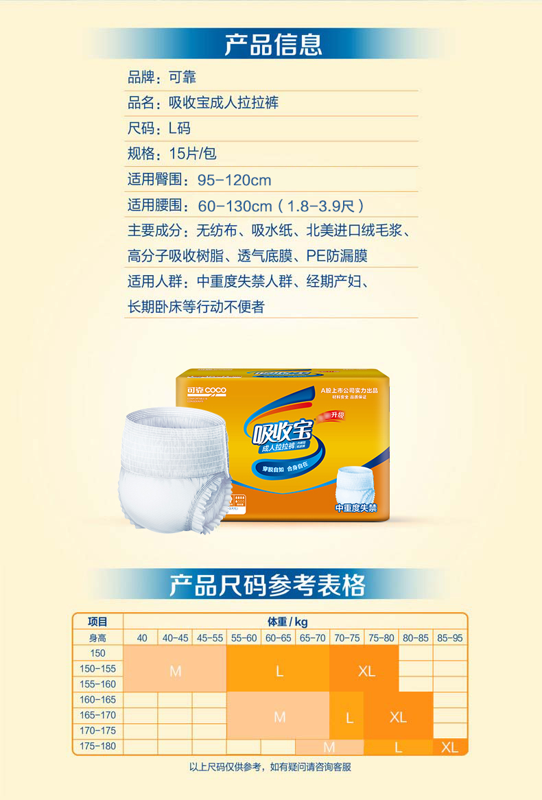 可靠吸收宝成人拉拉裤M/L大包装加量装内裤型成人纸尿裤单包