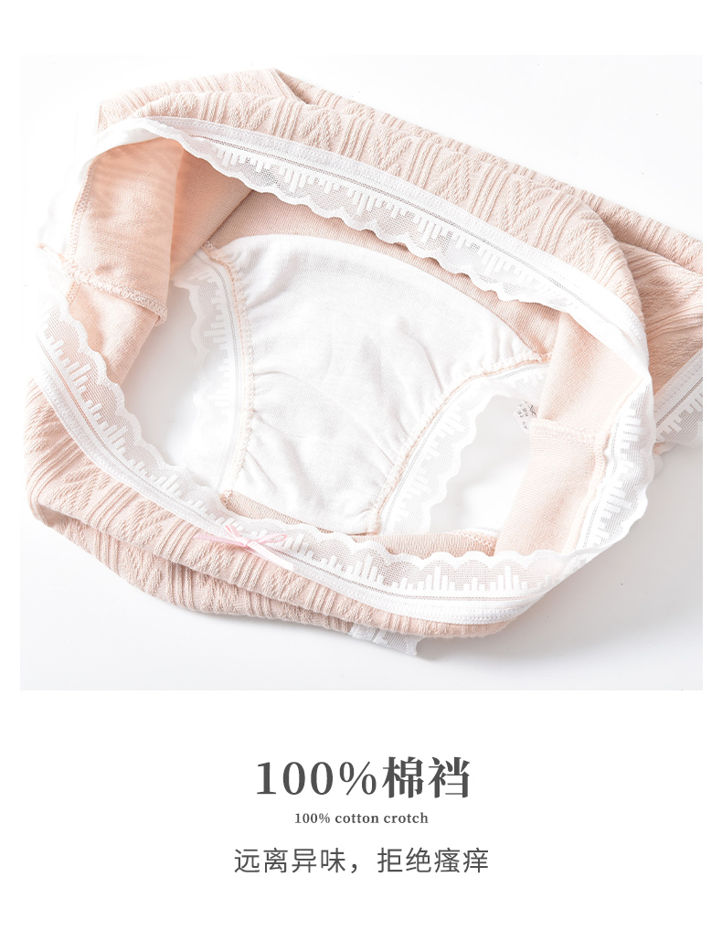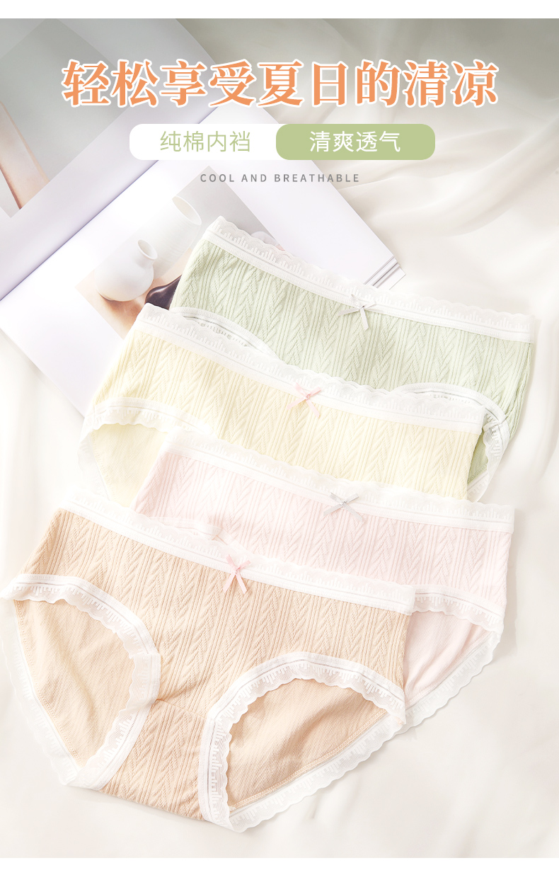 洁丽雅4条装纯棉中腰女士内裤双层纯棉内裆轻薄透气舒适亲肤三角裤女