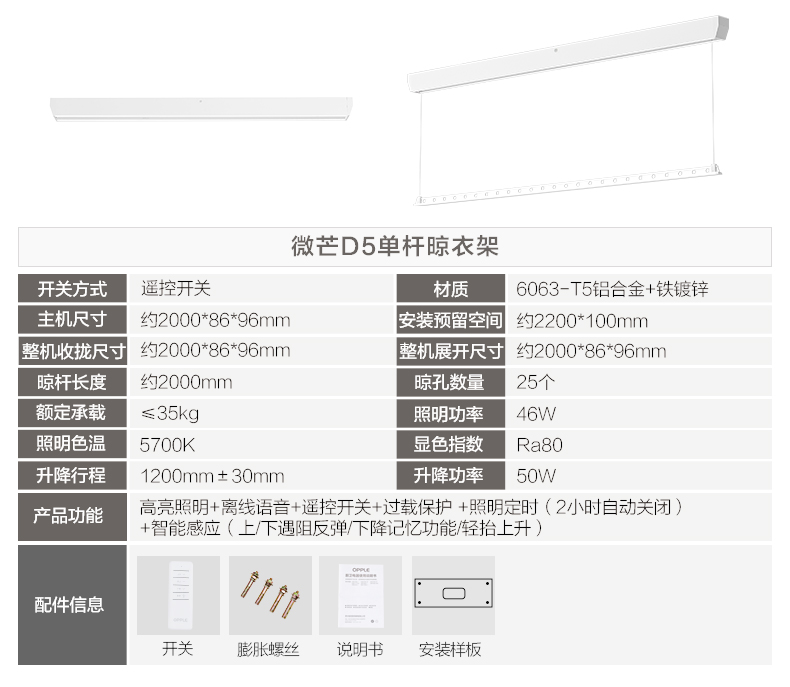 欧普(OPPLE)微芒极窄电动晾衣架