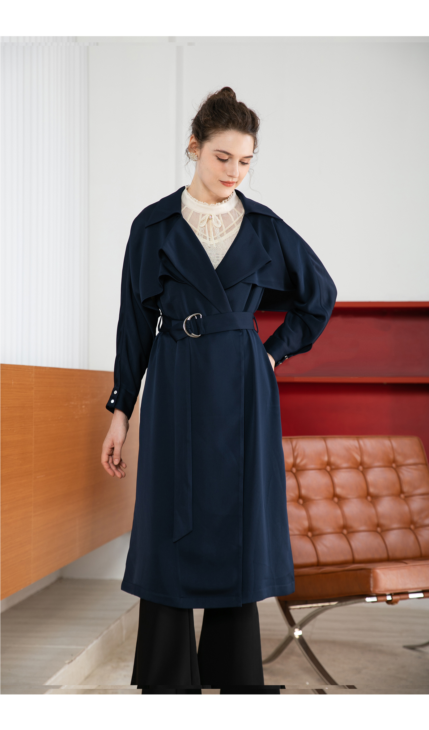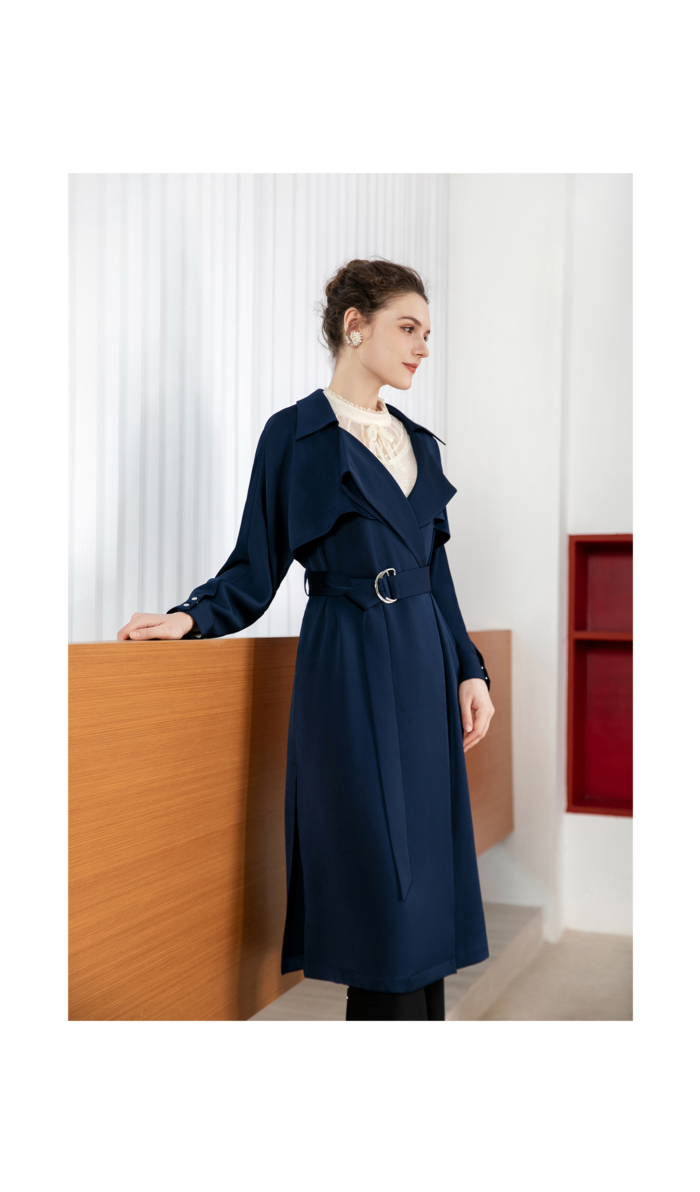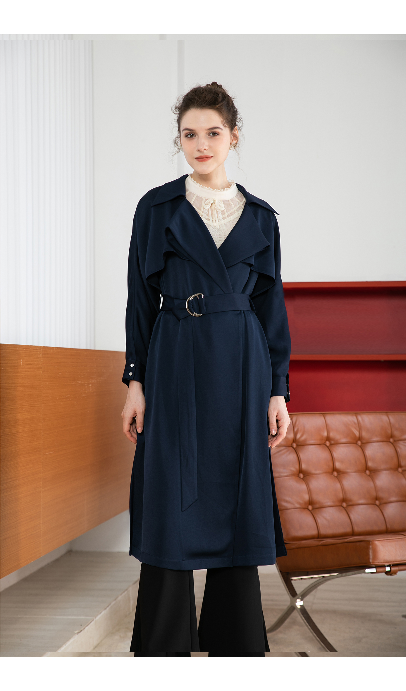 司歌时尚廓形中长风衣腰带秋女R901282X
