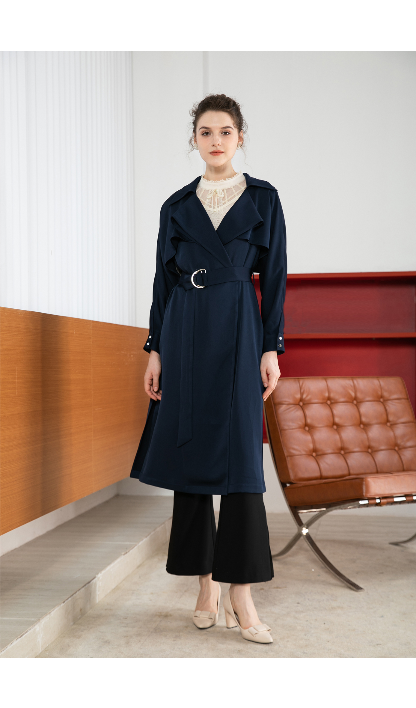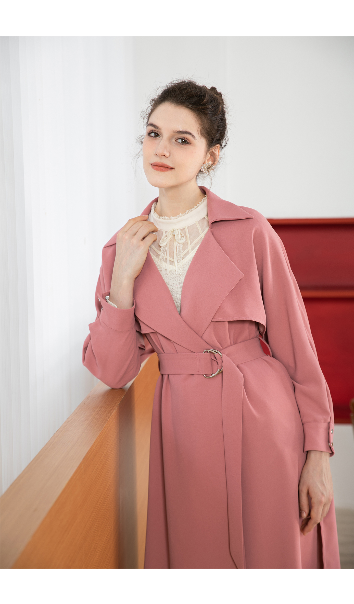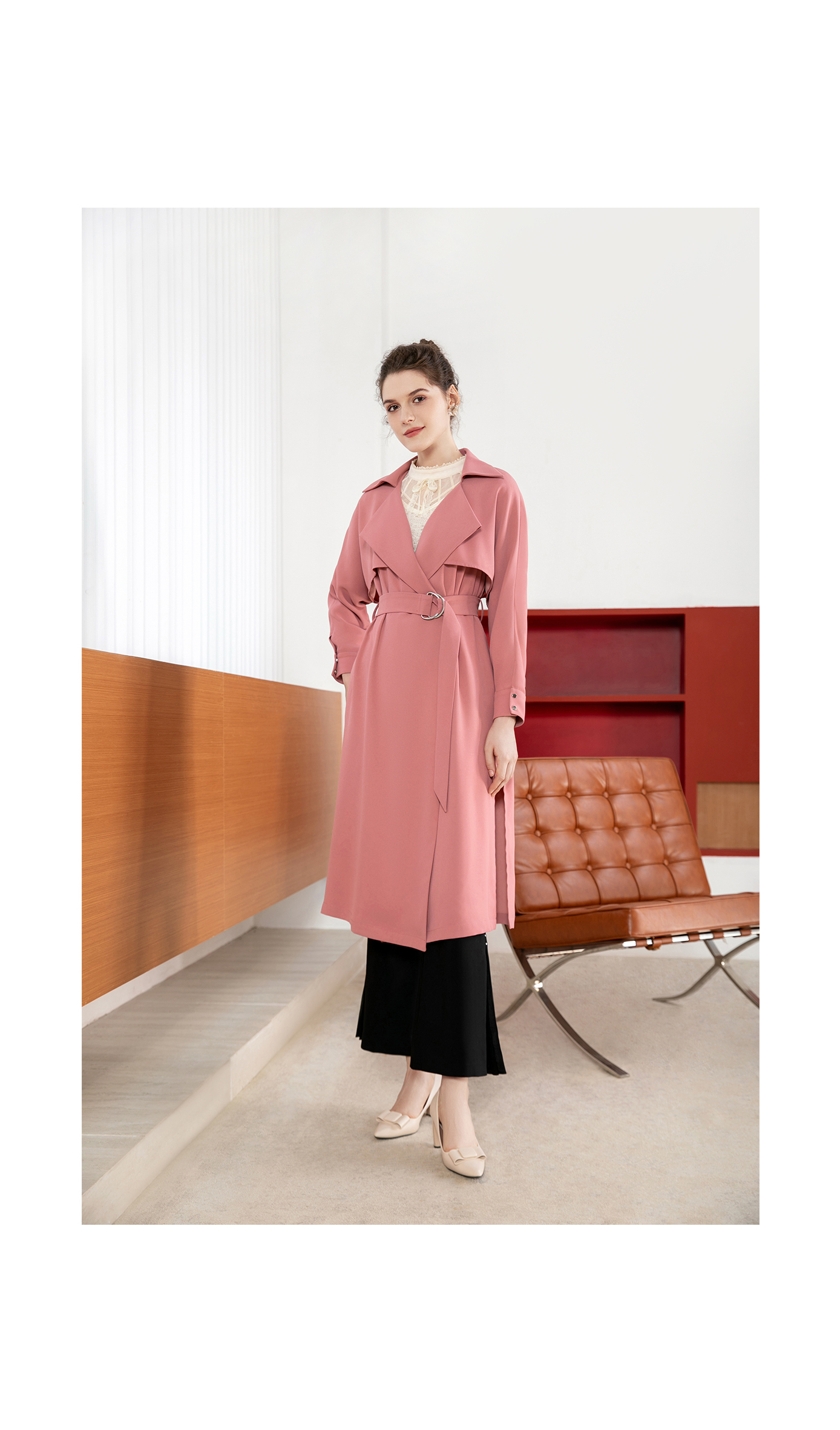 司歌时尚廓形中长风衣腰带秋女R901282X