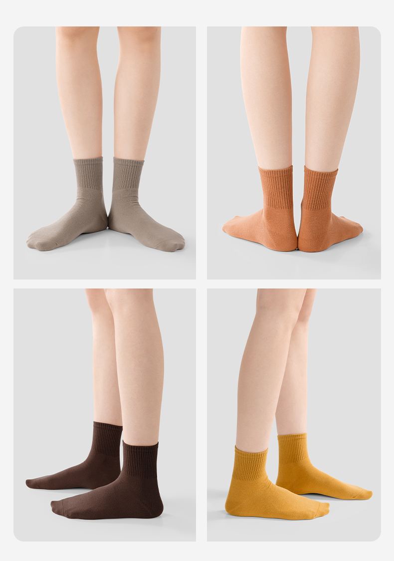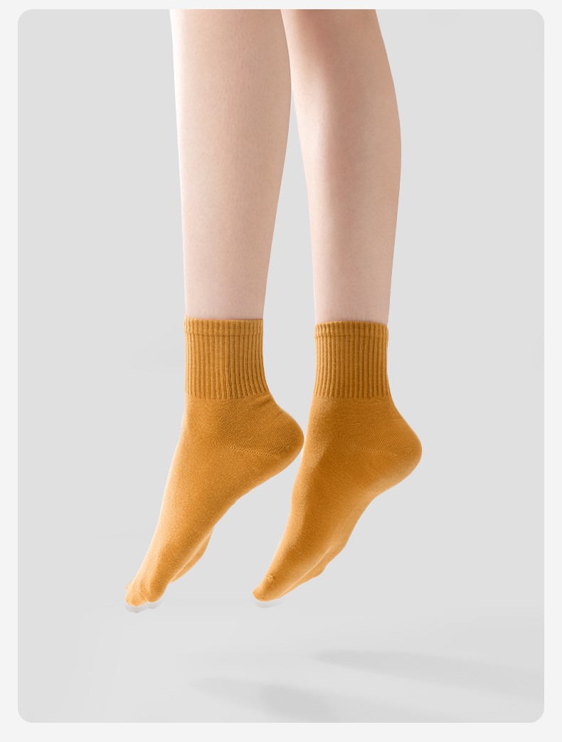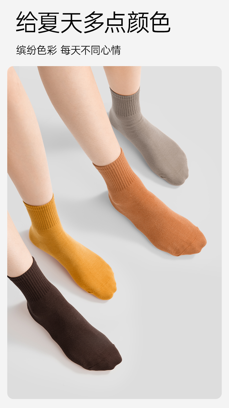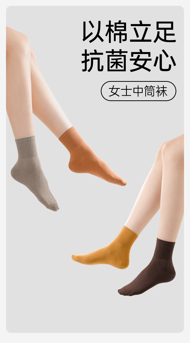 【AAA抑菌】洁丽雅五双装纯棉女士中筒袜柔软舒适透气防臭薄款袜子