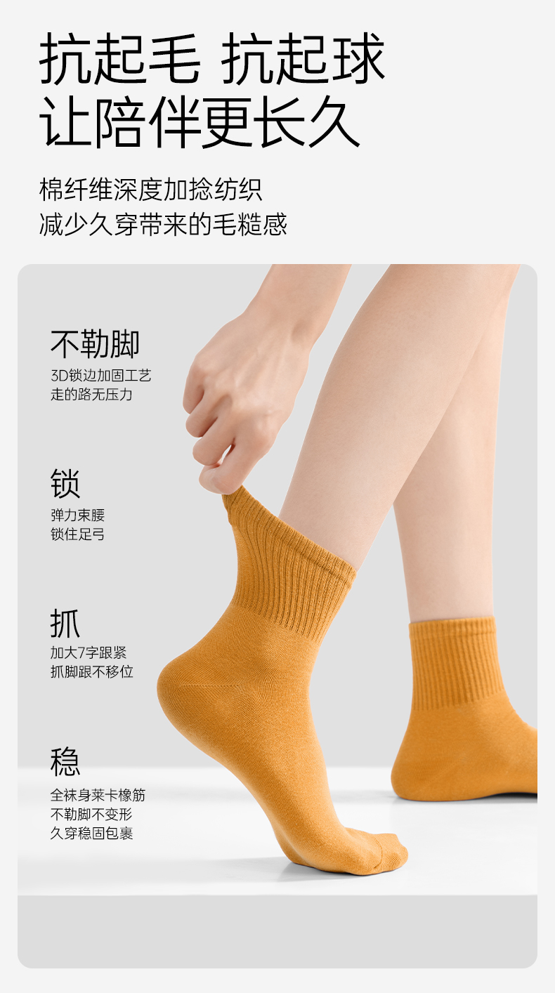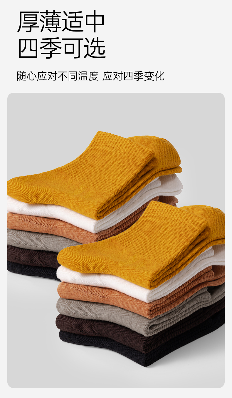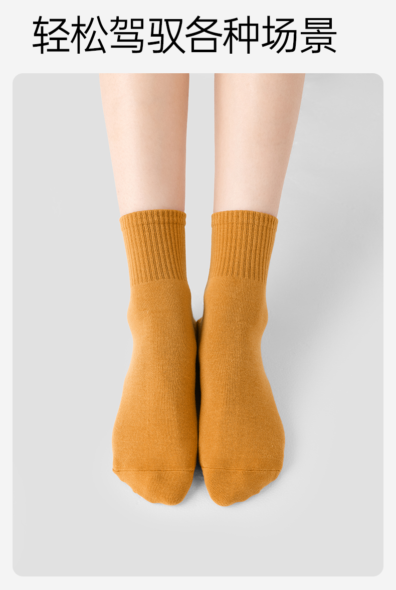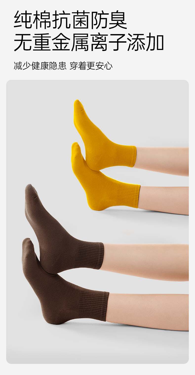 【AAA抑菌】洁丽雅五双装纯棉女士中筒袜柔软舒适透气防臭薄款袜子