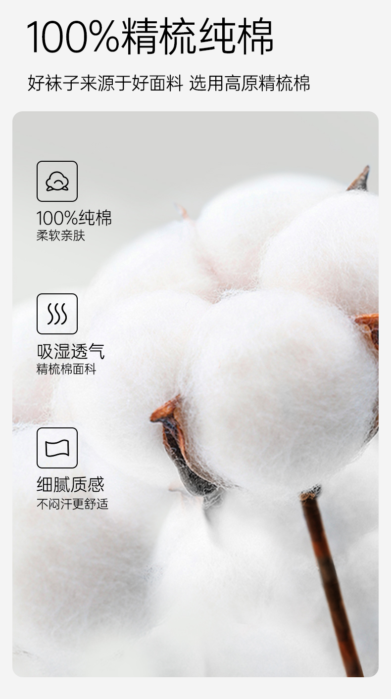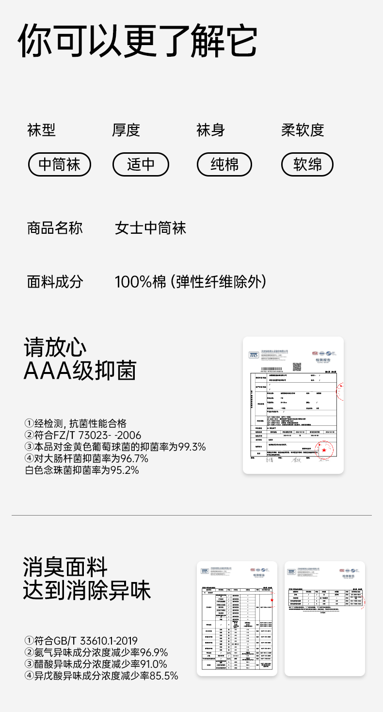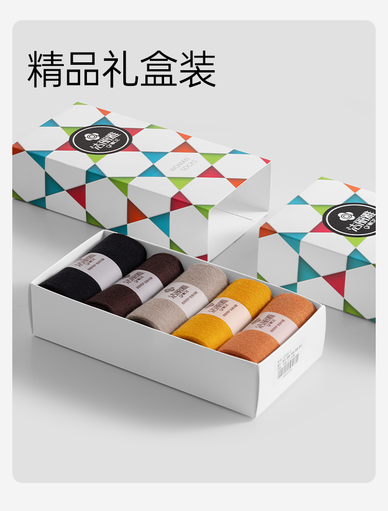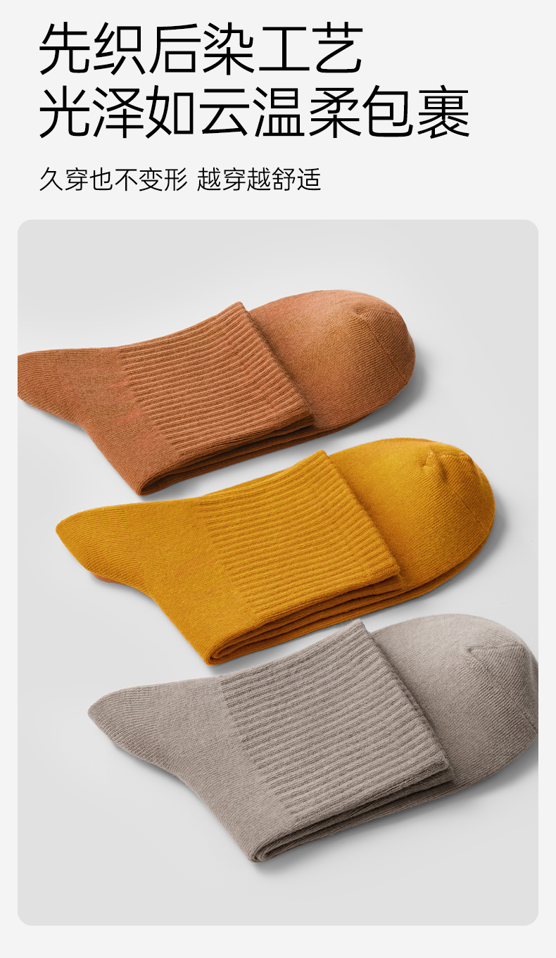 【AAA抑菌】洁丽雅五双装纯棉女士中筒袜柔软舒适透气防臭薄款袜子