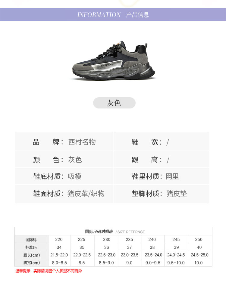 西村名物2021年秋冬商场同款男鞋韩版休闲鞋轻便防滑阿甘鞋小白鞋老爹鞋X11CW33541