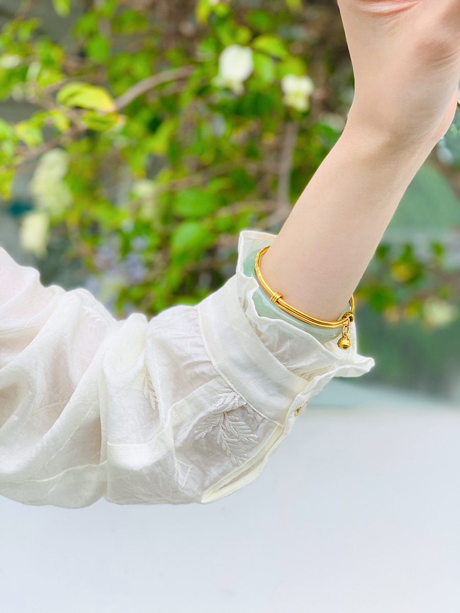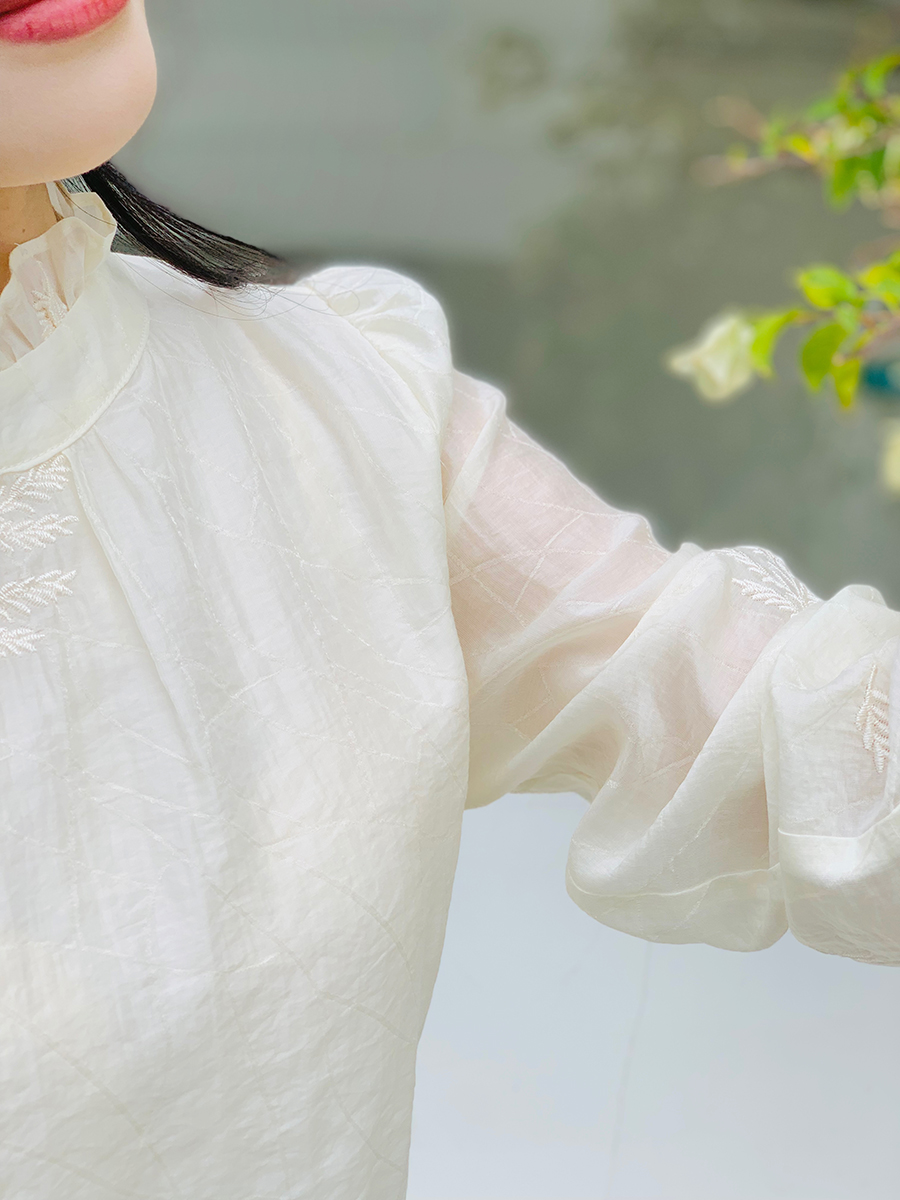后背琥珀纽扣,给脖颈增加呼吸空间
