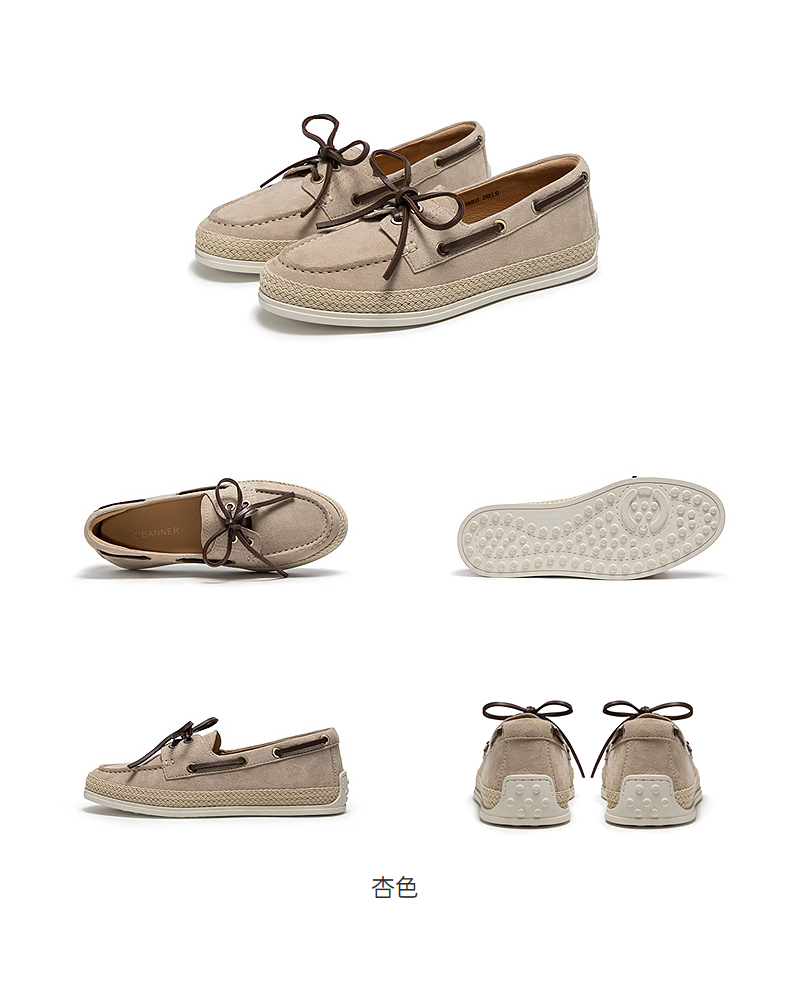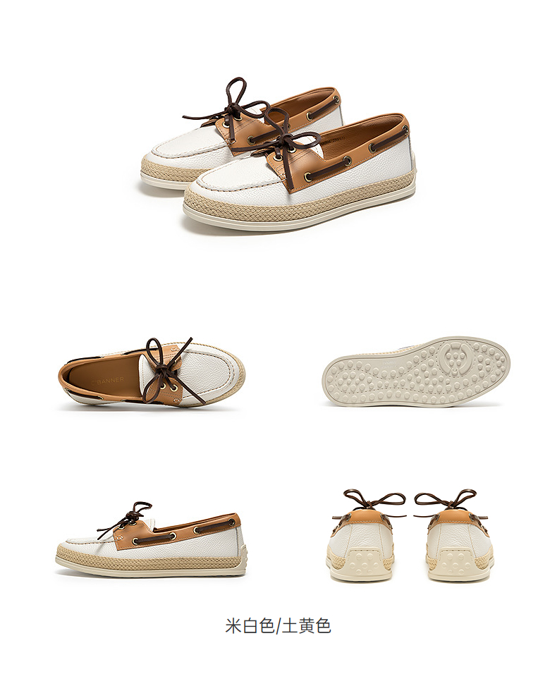 千百度羊皮平底鞋女耐穿白色真皮豆豆鞋小皮鞋乐福鞋A25185708