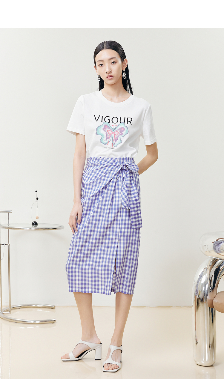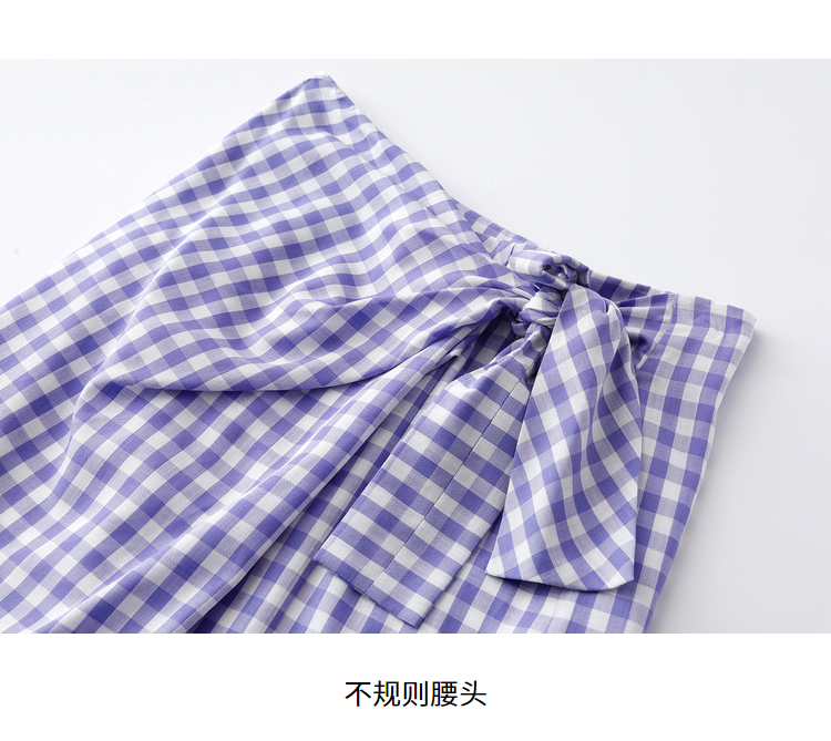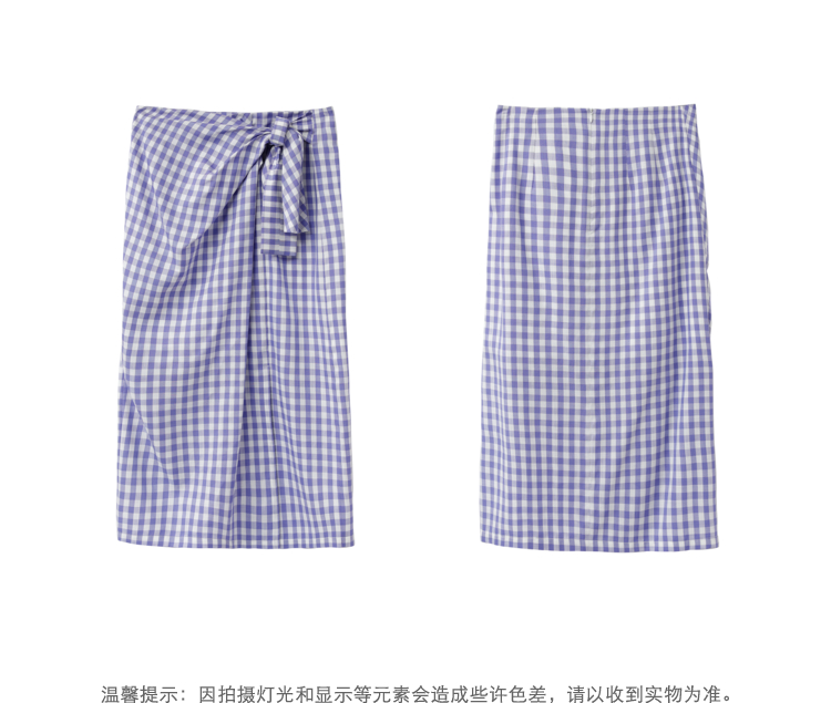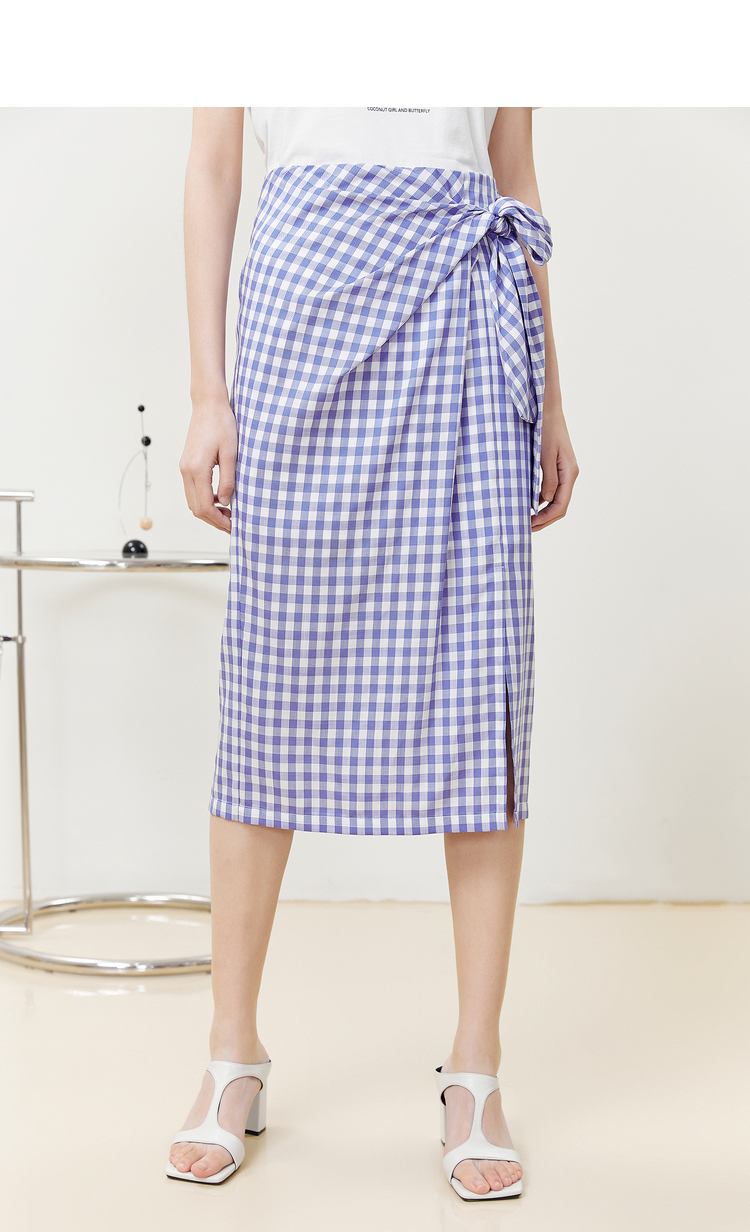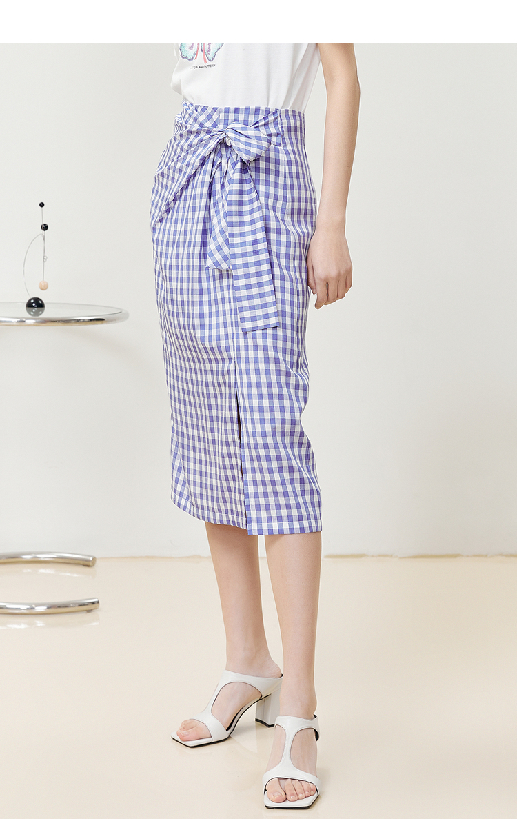 NEELLY纳俪商场同款格子半身裙女扭结系带显瘦A字裙下开叉半裙N22051E01141