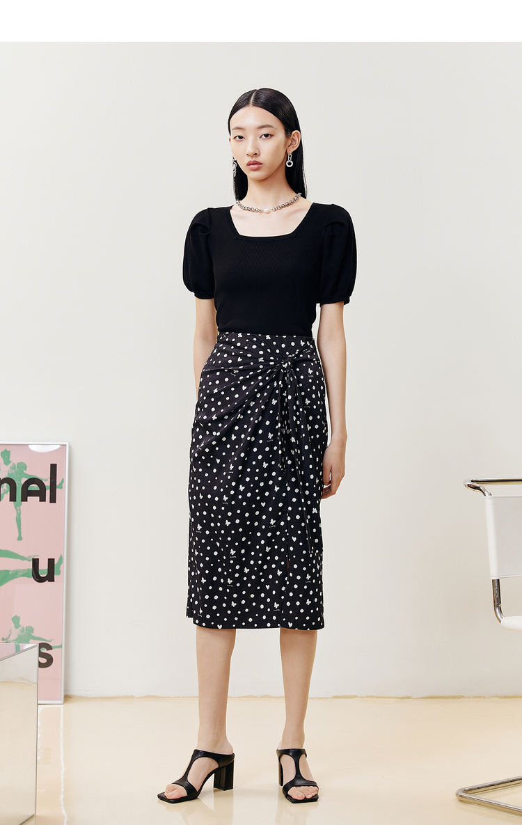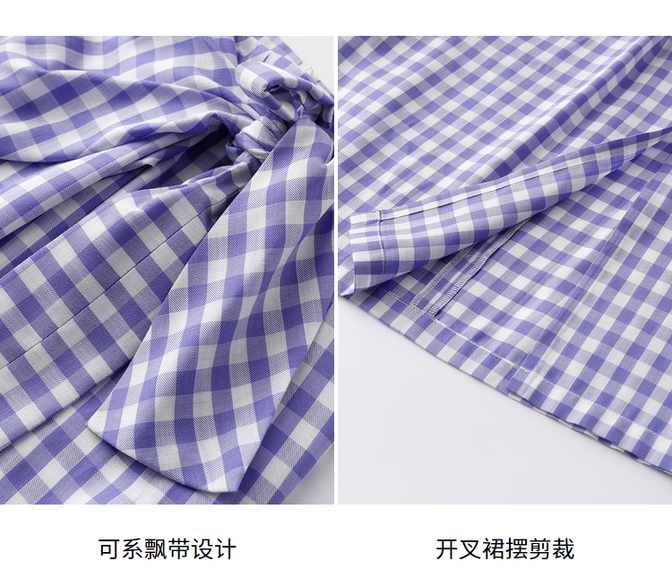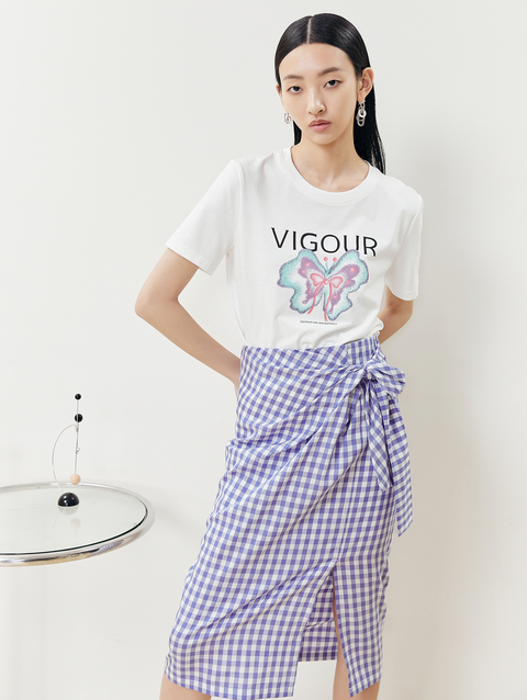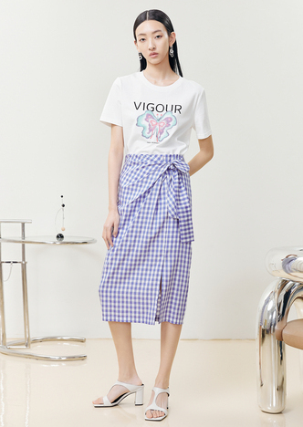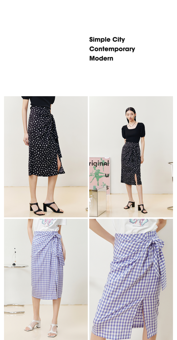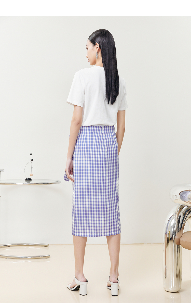 NEELLY纳俪商场同款格子半身裙女扭结系带显瘦A字裙下开叉半裙N22051E01141