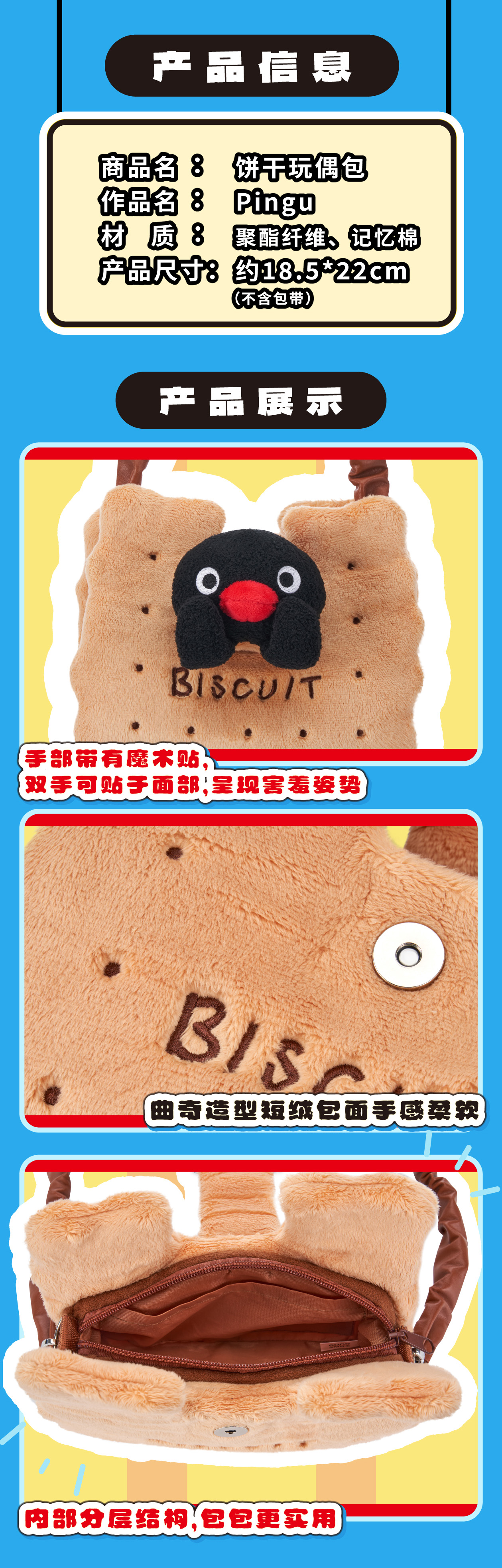 版权到期【GSC现货】pingu企鹅家族可爱玩偶饼干可爱秋冬单肩包手提包GSM