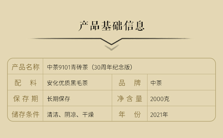 黑茶 | 中茶 2021年 9101青砖茶30周年纪念版2KG