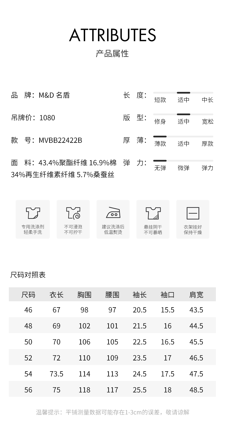 | 男装品牌: M&D/名盾 | 货号: MVBB22422B |