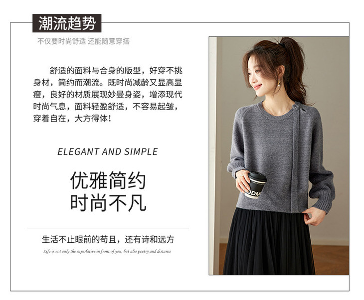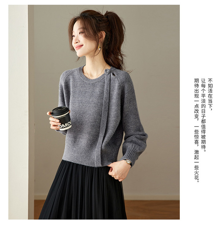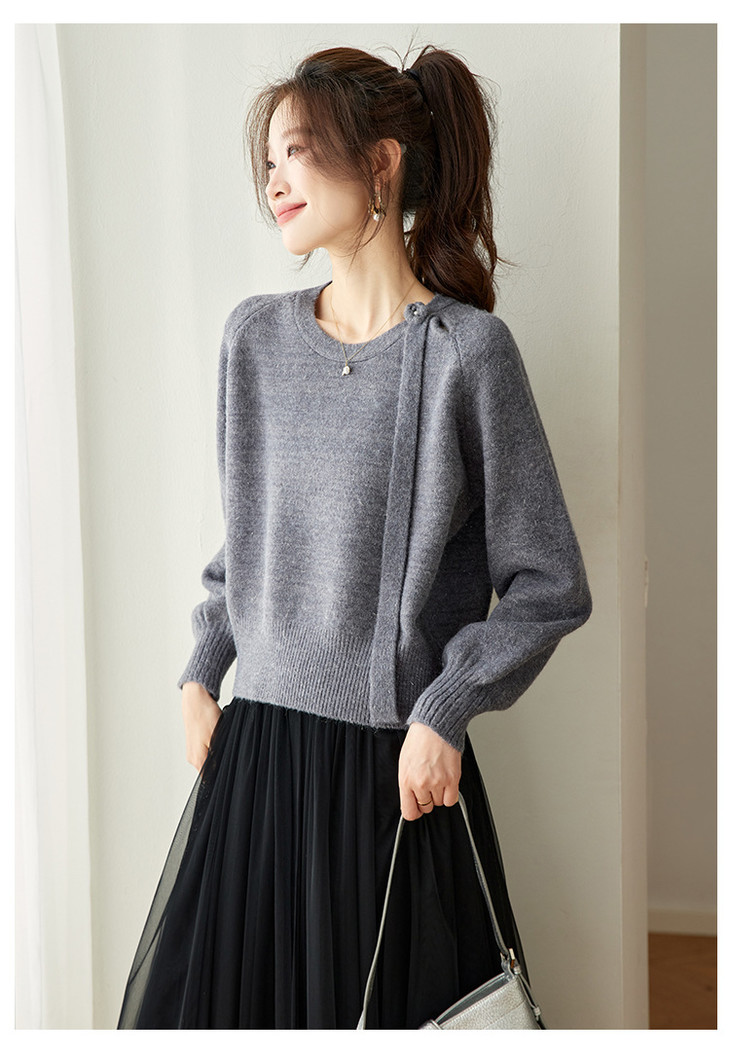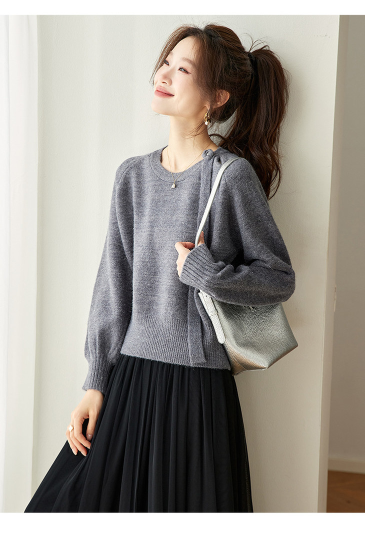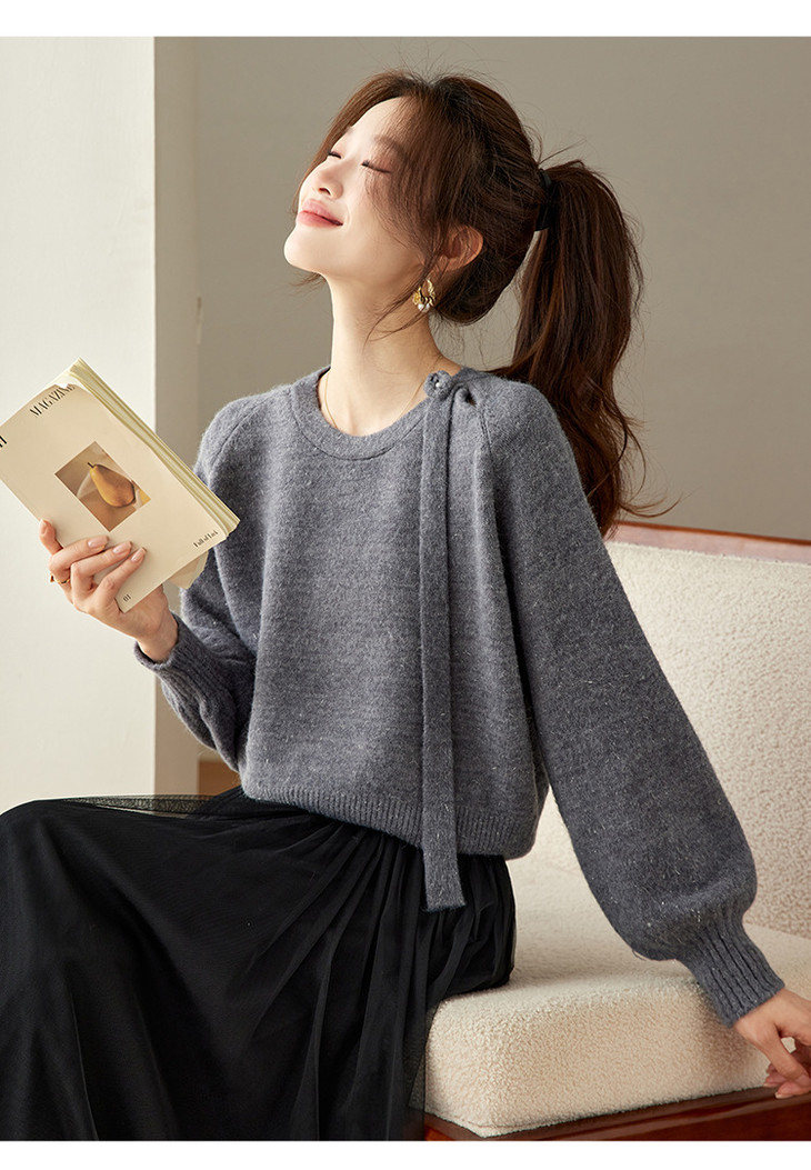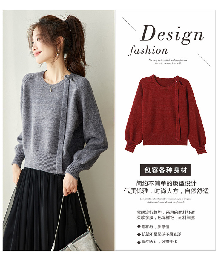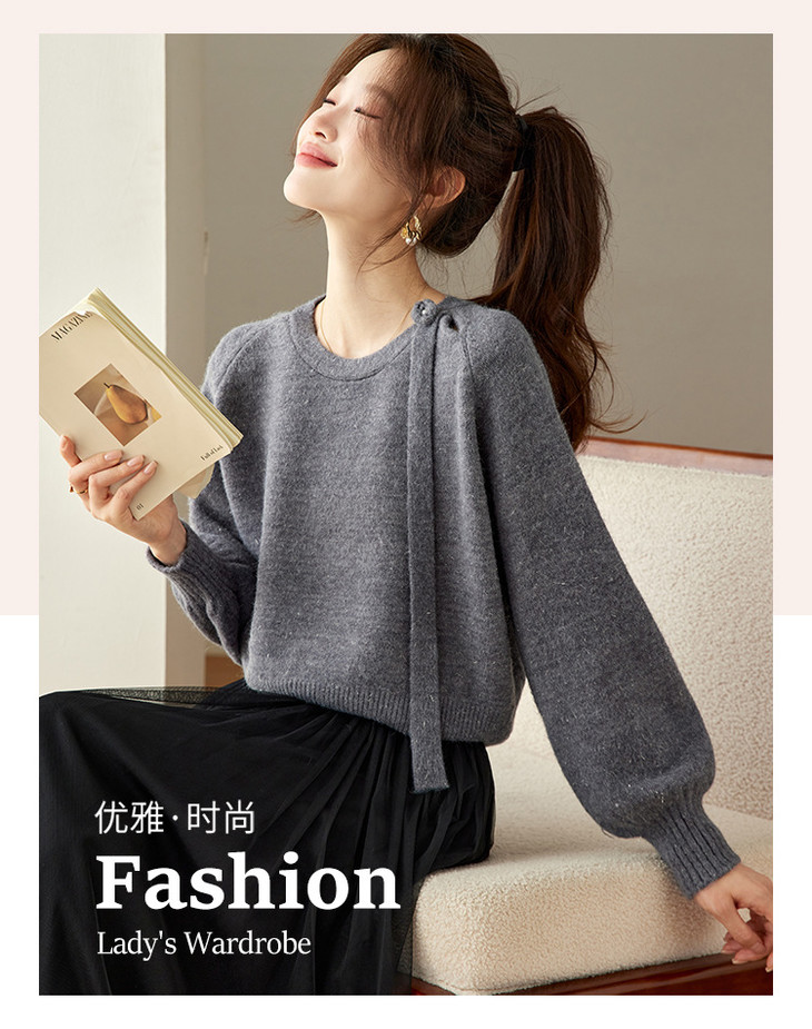 法式飘带针织衫,长袖宽松慵懒风清新打底衫CC-27-25240