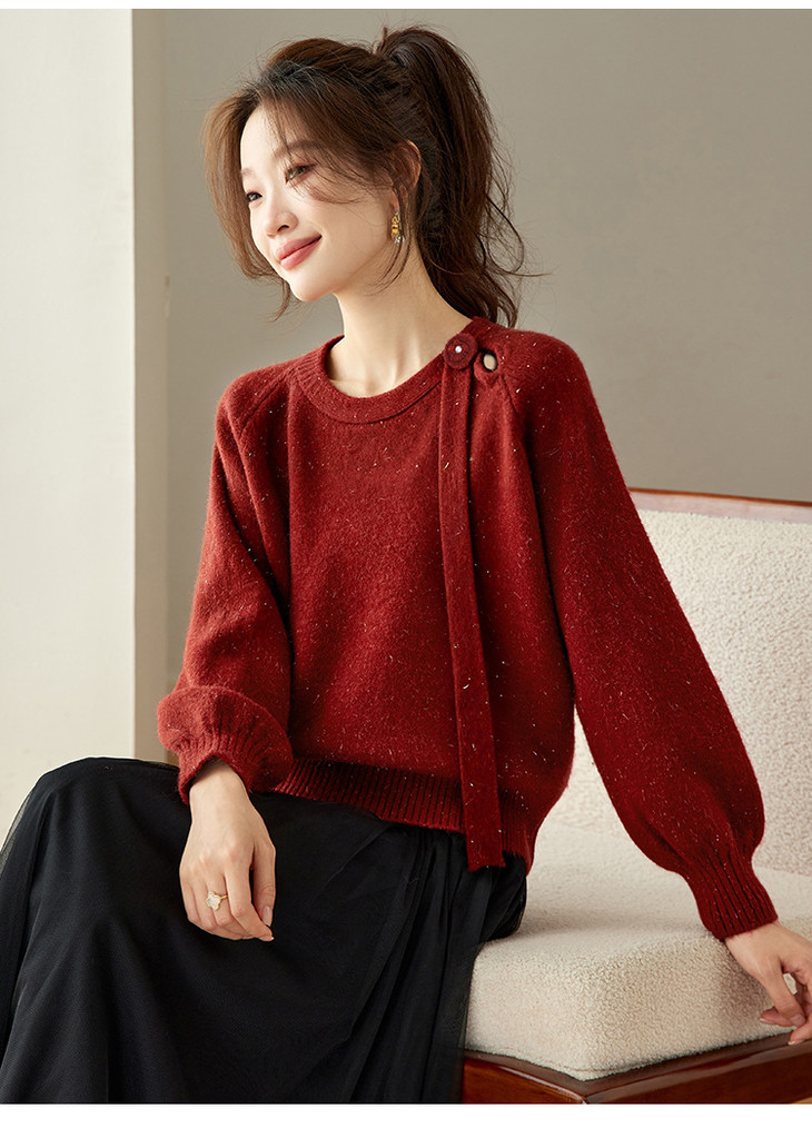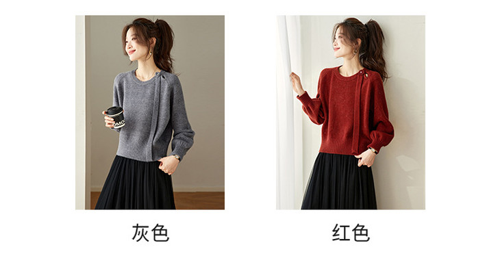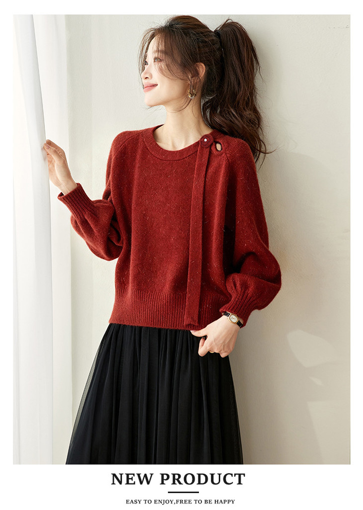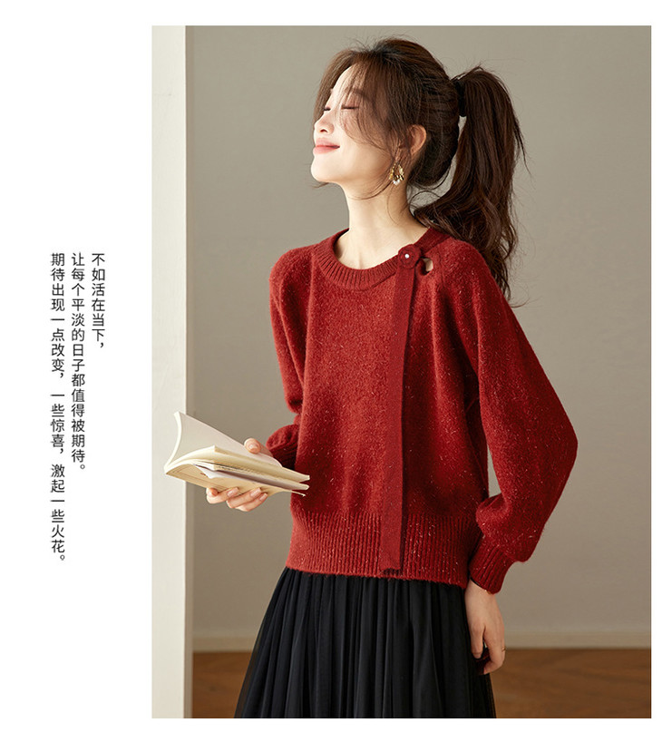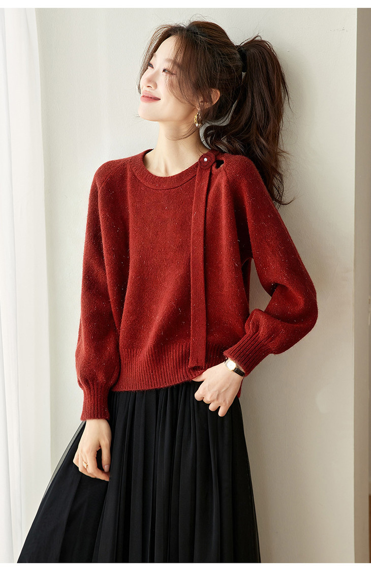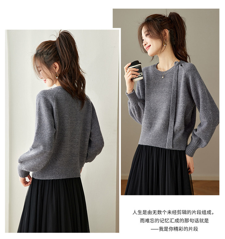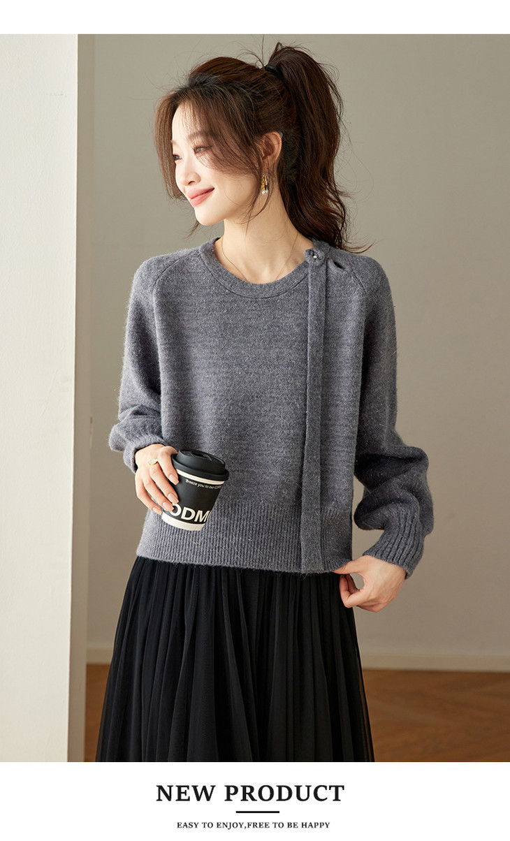 法式飘带针织衫,长袖宽松慵懒风清新打底衫CC-27-25240