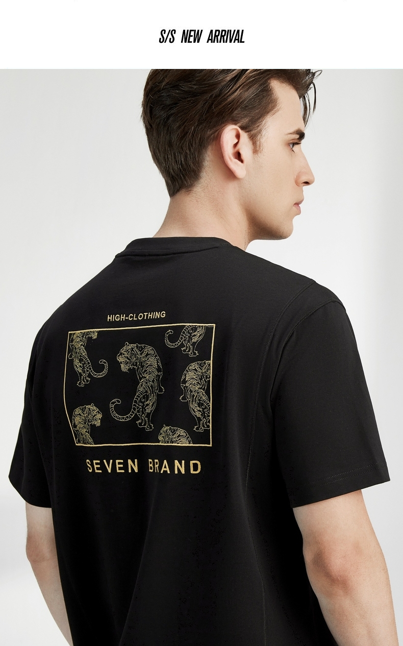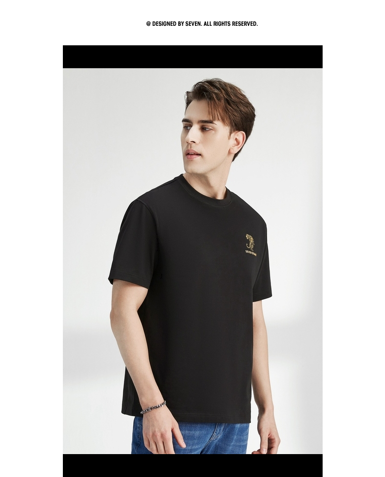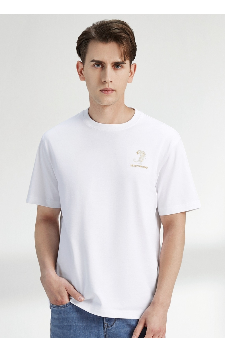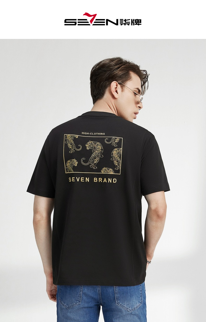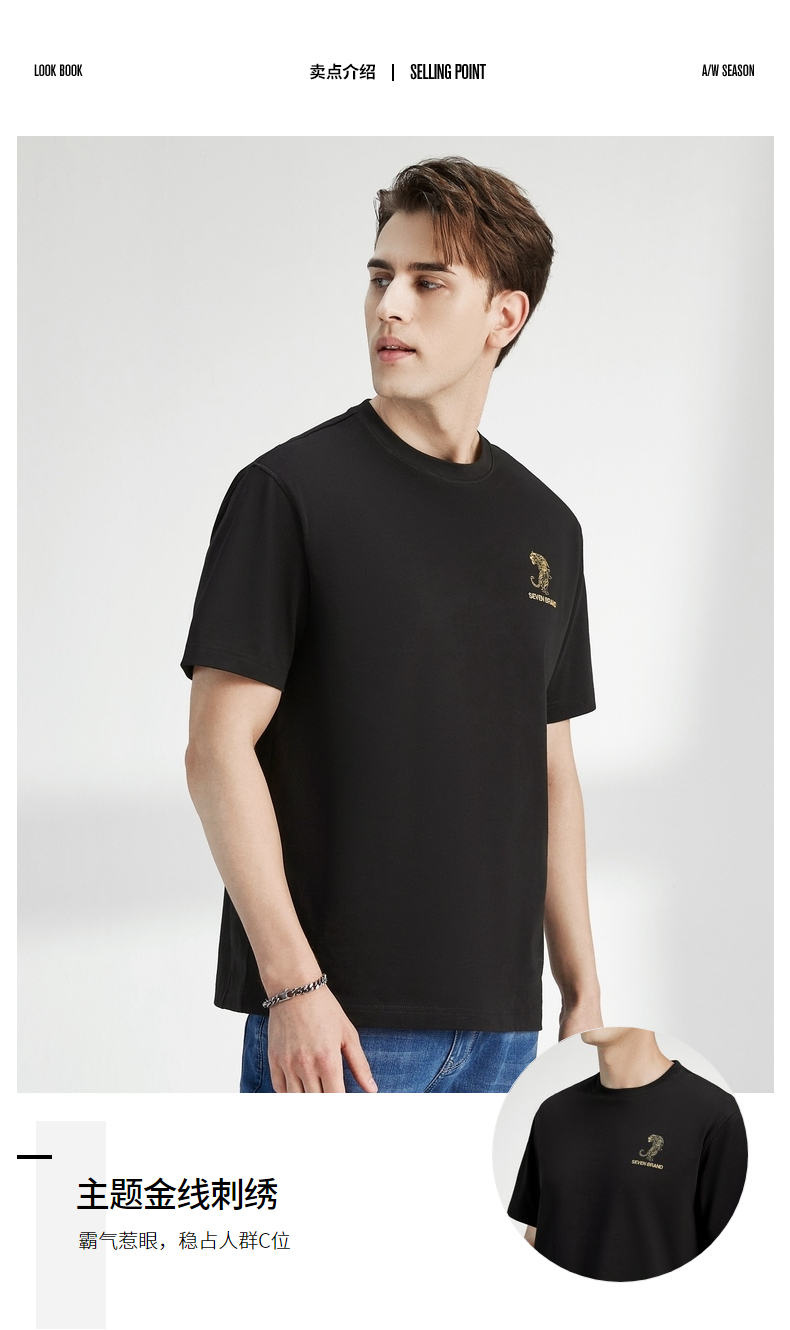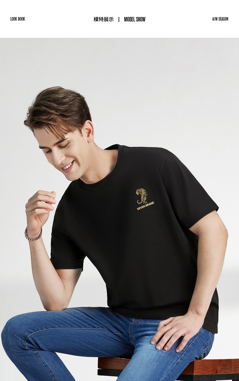 柒牌短袖t恤男夏季新款虎年刺绣时尚休闲纯棉宽松圆领体恤衫 122T71320
