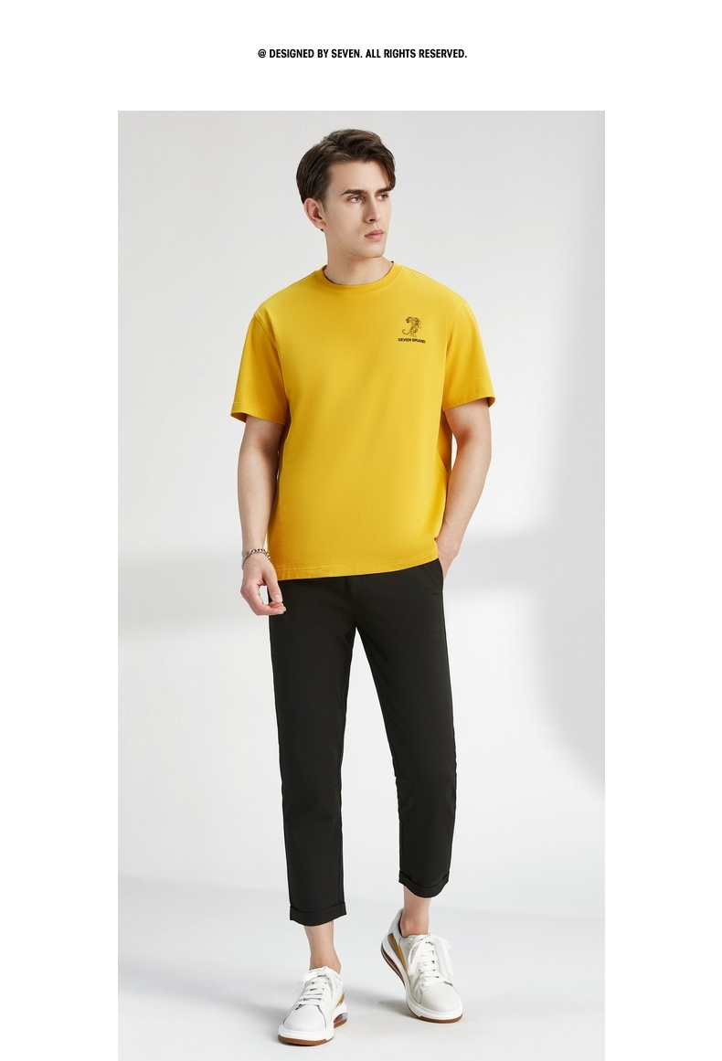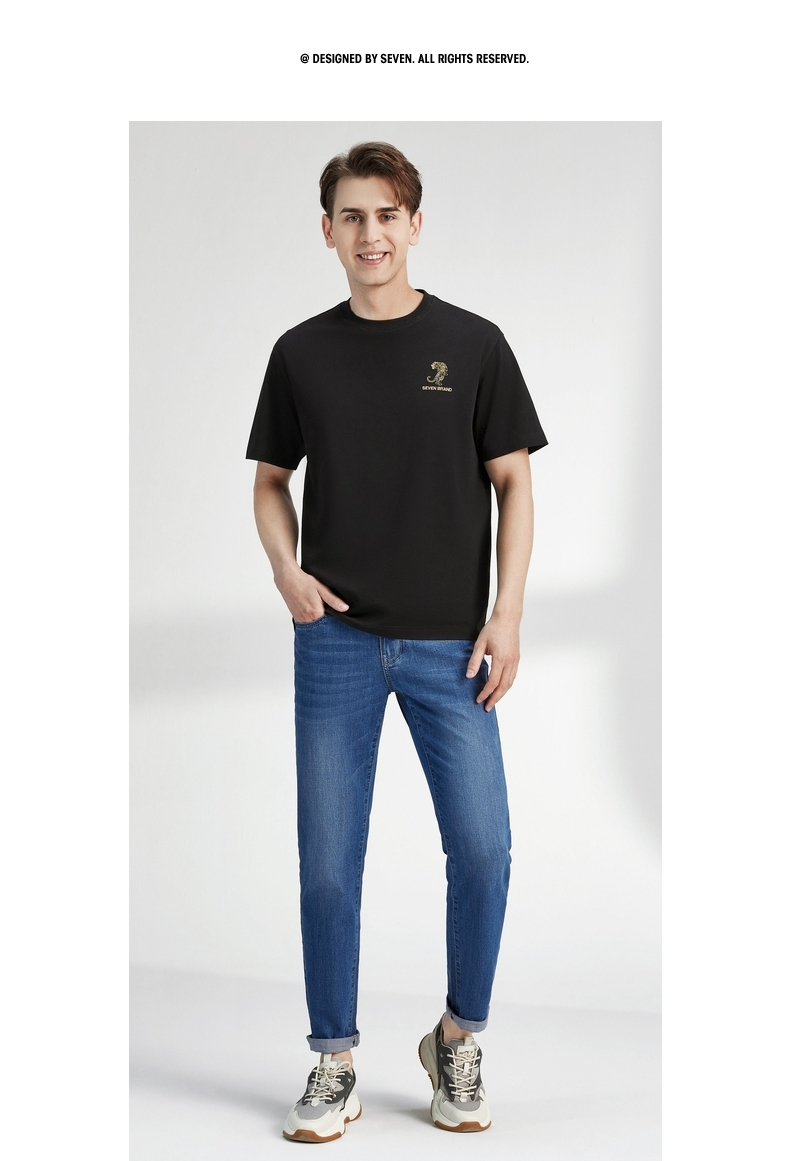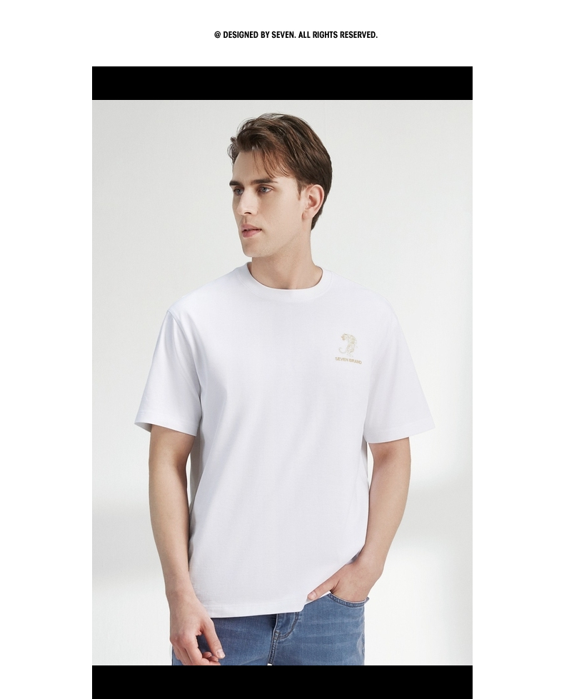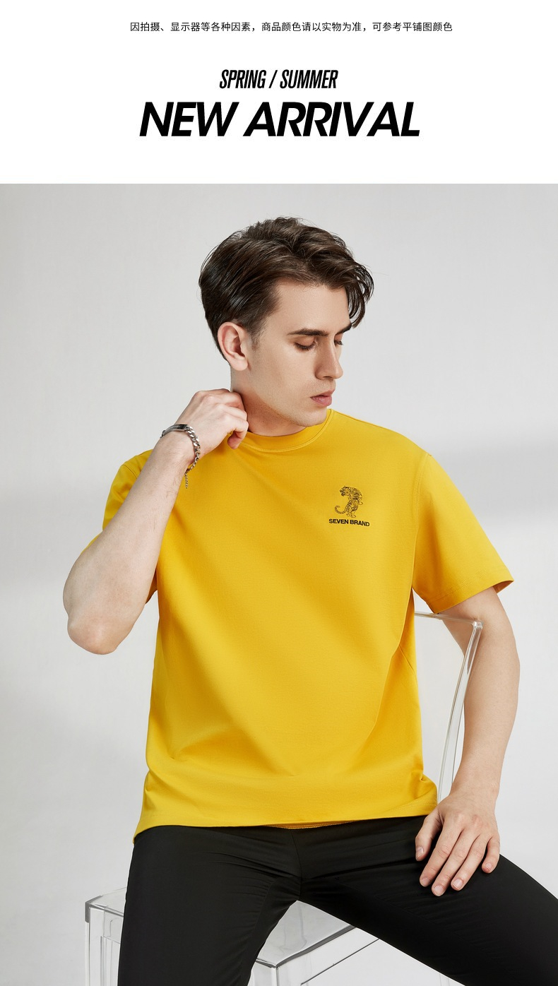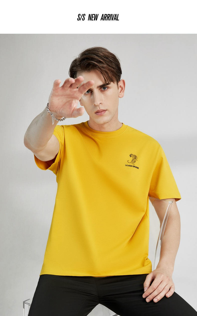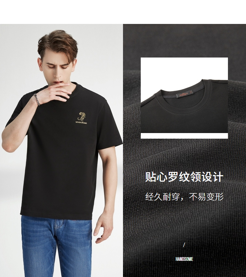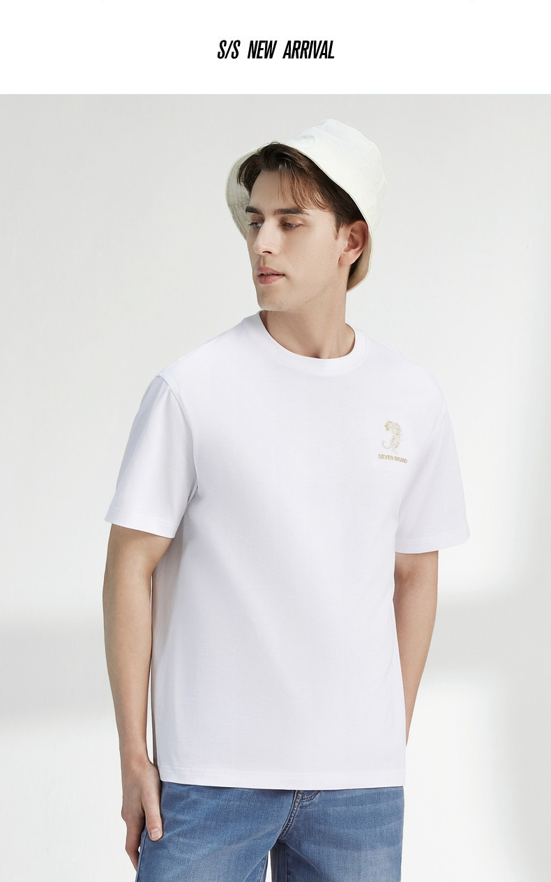 柒牌短袖t恤男夏季新款虎年刺绣时尚休闲纯棉宽松圆领体恤衫 122T71320