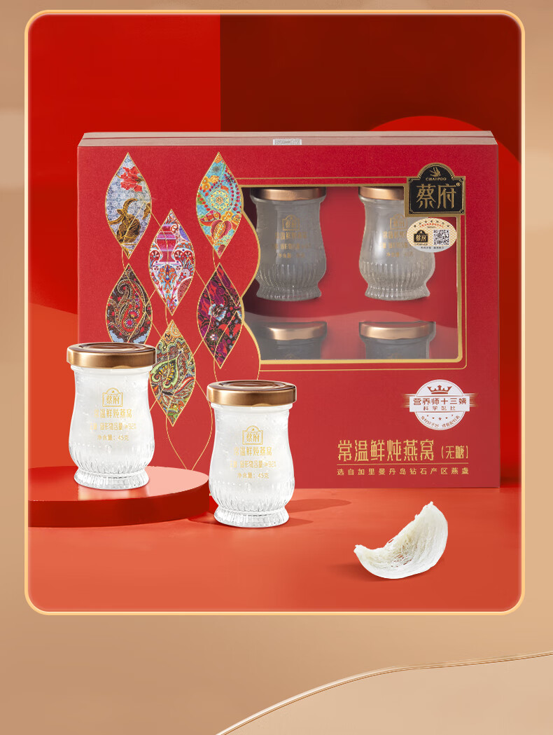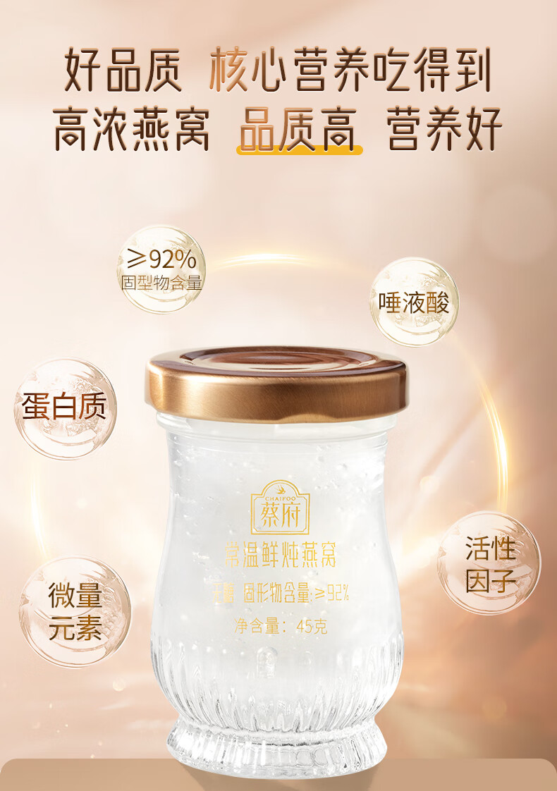 【一件包邮 传统滋补】蔡府常温鲜炖燕窝无糖45g*6瓶 口感丝滑蛋清味浓 甘肃/青海/内蒙古/新疆/西藏/宁夏/海南/港澳台不发货