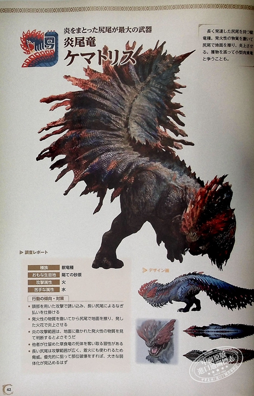 聚焦于“wills”新要素的解说、大型怪物的介绍、各种武器的使用方法等,刊载了对今后踏上旅程的所有猎人们有用的信息之外,还能感受到充满生命美的世界观和怪物的特征。也准备了能的视觉页面。附录的大型海报(B2尺寸)一起,是增加对该作品的游玩欲望的毫无疑问的道具。