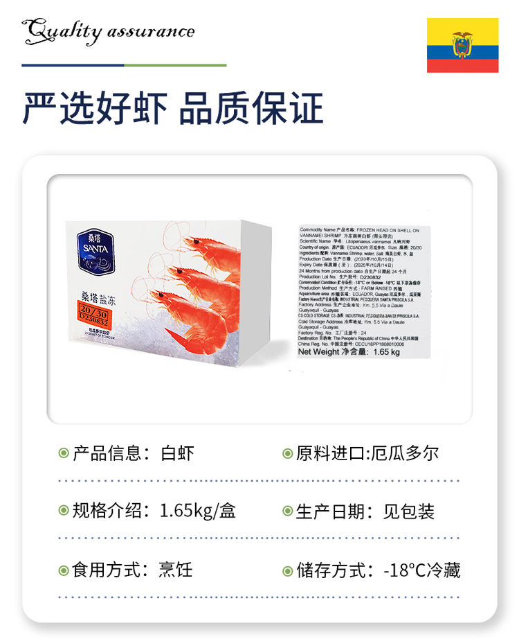 【厄瓜多尔白虾】 来自白虾王国厄瓜多尔 鲜活捕捞锁鲜 肉质鲜甜 原汁原味
