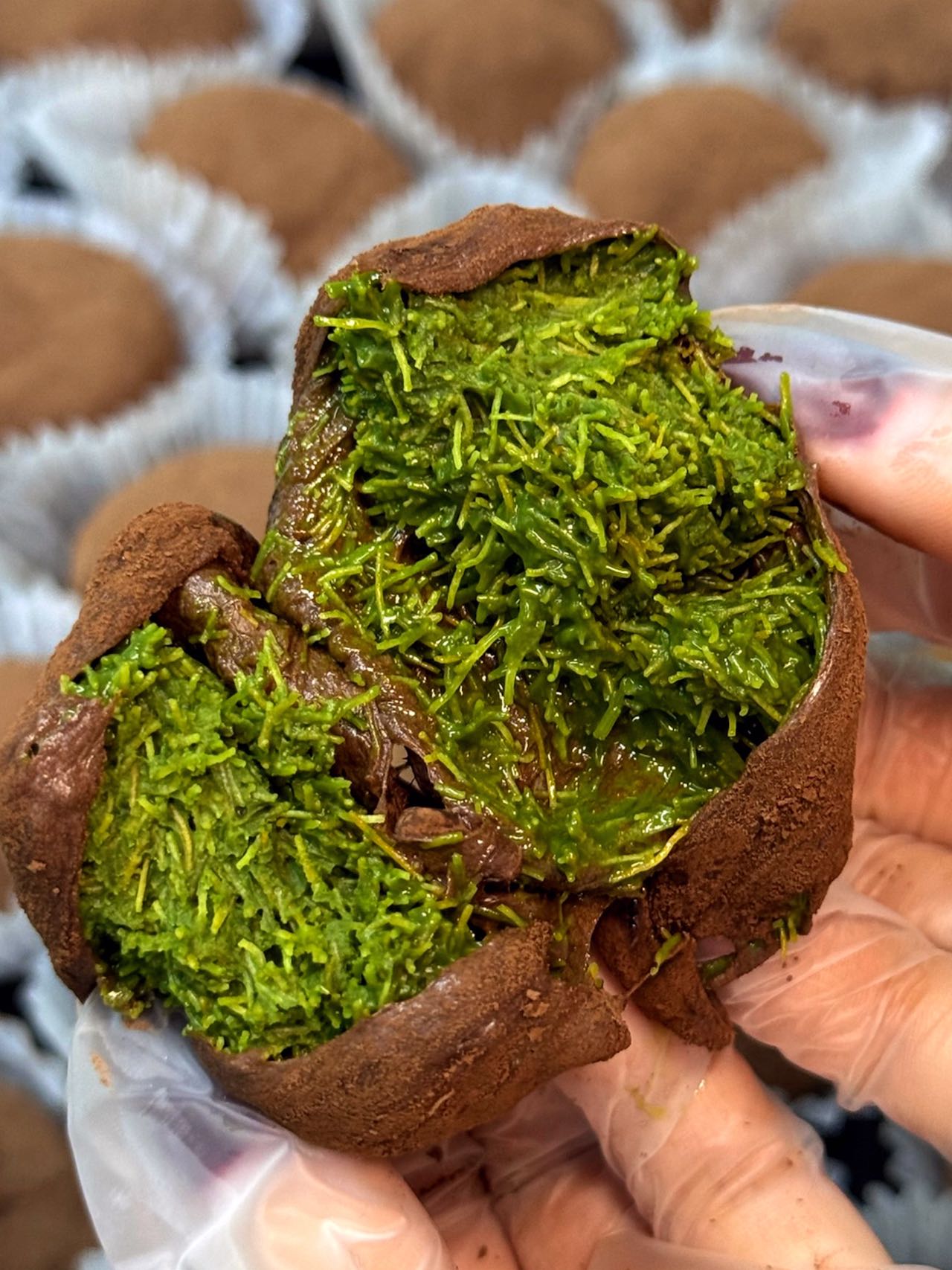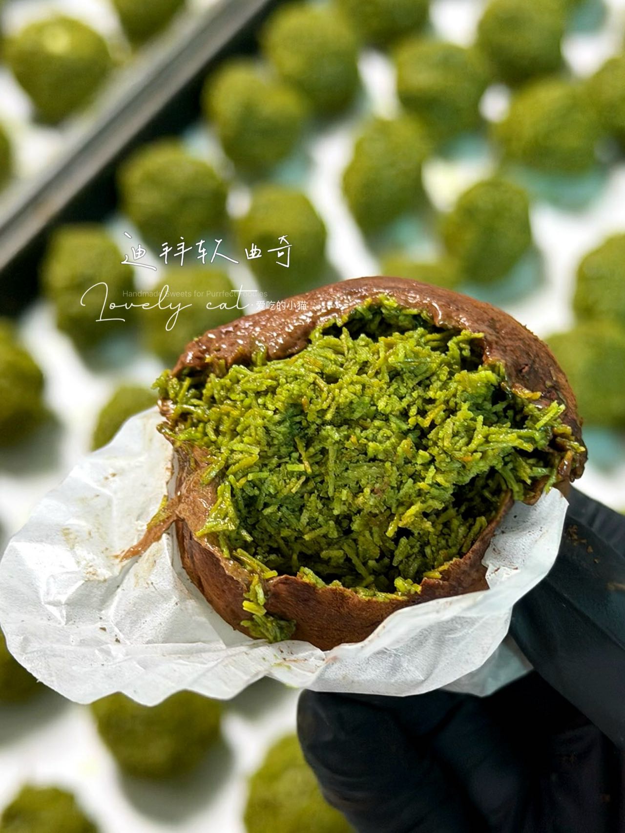 纯手工0防腐剂【迪拜软糯曲奇】7天内发货,外皮是软糯拉丝的无蔗糖棉花糖,包裹着黄油烤制的酥脆中东面丝,混合开心果酱与可可白巧克力,手工碾碎,层次超丰富!保质期:冷藏10天 冷冻60天