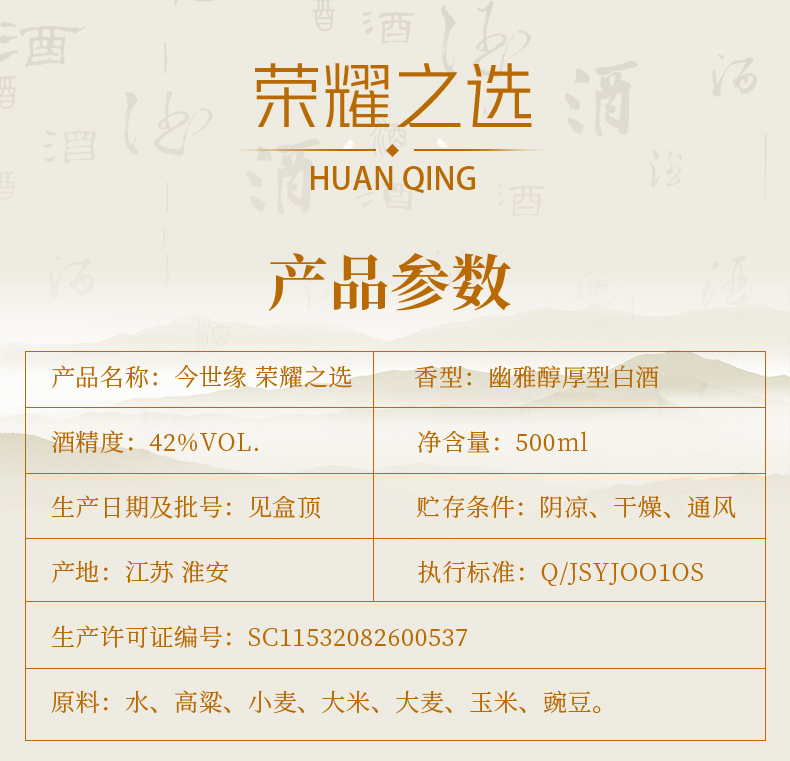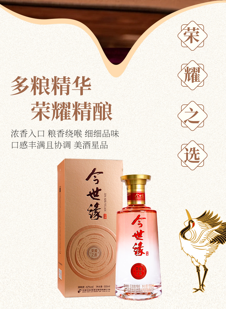 【酒厂直营】42度500ml今世缘·荣耀之选
