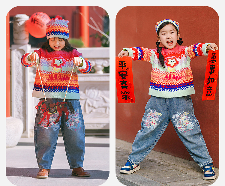 [密扇联名]迷你巴拉巴拉女童儿童毛衣柔软亲肤保暖新年毛衫拜年服