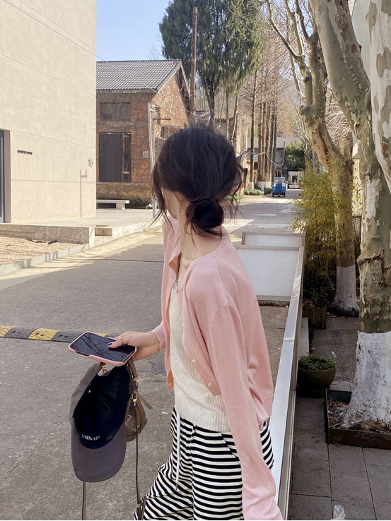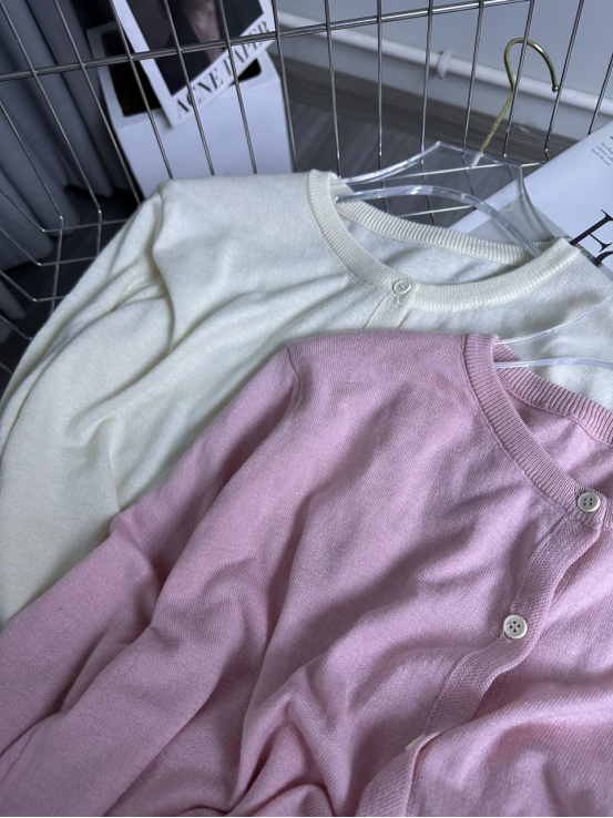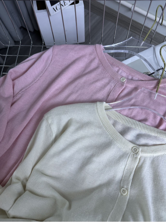 软糯针织开衫质量绝了!!! 可以单穿或者当做开衫来穿 色系很温柔 质感很软糯的那种 版型很基础百搭搭配短裙或者牛仔裤都很好看 日常通勤、约会都🉑️