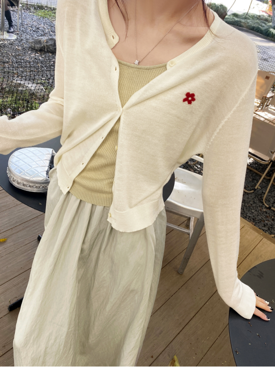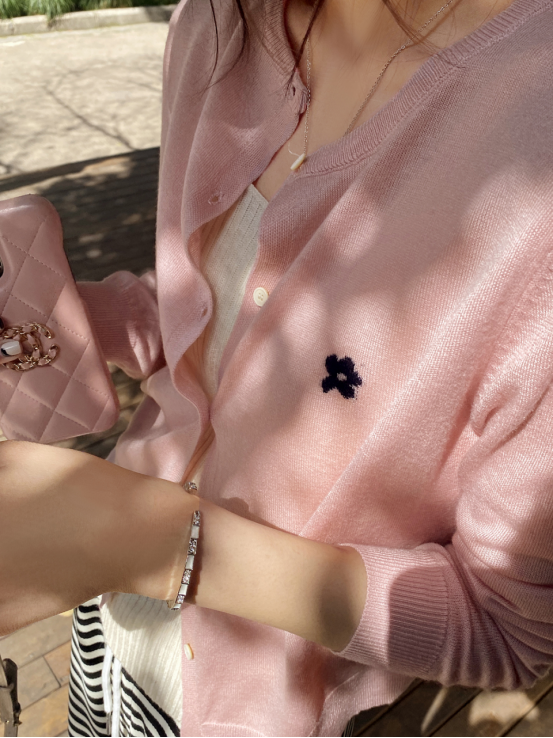 早秋好物泰迪熊TEDDYBEAR小花慵懒气质开衫——1602 温柔姐姐氛围感~针织开衫这样穿太气质了 太喜欢了软软糯糯春秋氛围感十足 通勤这样穿真的很舒服又好看 ❗️轻松穿出纸片人的效果 我感觉可以穿三季