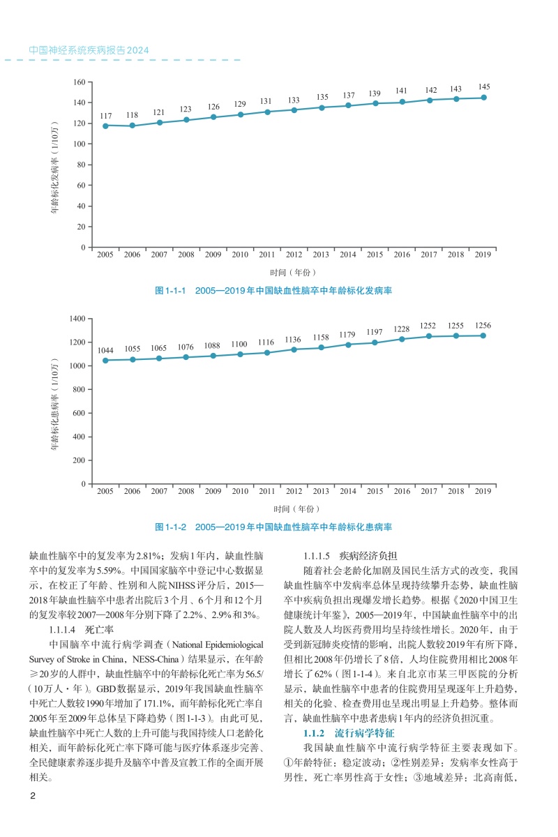 本报告共分14章,涵盖脑血管病、痴呆与认知障碍疾病、运动障碍疾病、癫痫、神经系统罕见病、周围神经疾病、神经-肌肉接头和肌肉疾病、多发性硬化、头痛和疼痛综合征、创伤性颅脑损伤、脊柱脊髓疾病、中枢神经系统肿瘤、发作性睡病、神经系统疾病护理。报告收录的文献包括基于中国人群的大样本横断面研究、队列人群流行病学调查、随机对照试验及注册登记研究等具有代表性的高质量研究结果。作为中国神经系统疾病信息权威发布平台,本报告为公众和专业人士提供全面了解我国神经系统疾病现状的有效路径,为政策制订、临床实践和科研发展提供科学依据。