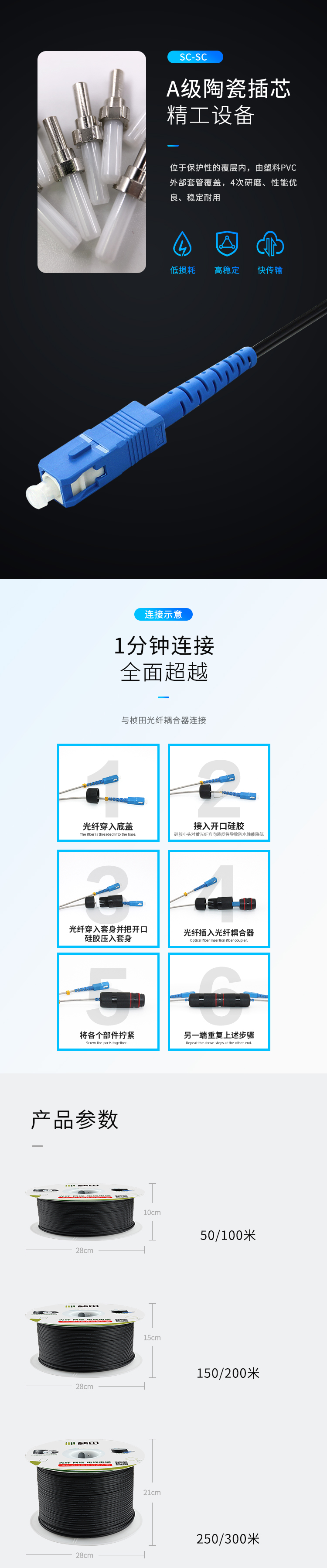 单芯单模防水免熔接光纤光缆跳线 SC-SC5805G-5830G/5805B-5830B