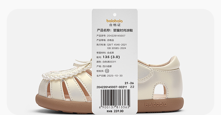 【商场同款】巴拉巴拉童鞋儿童稳步鞋女童2026夏季新精致刺绣凉鞋