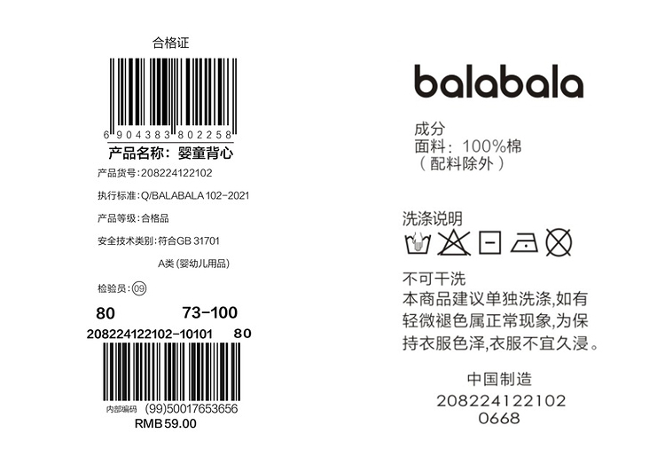 巴拉巴拉婴儿背心马夹男童夏季薄款外穿新款纯棉舒适清新可爱