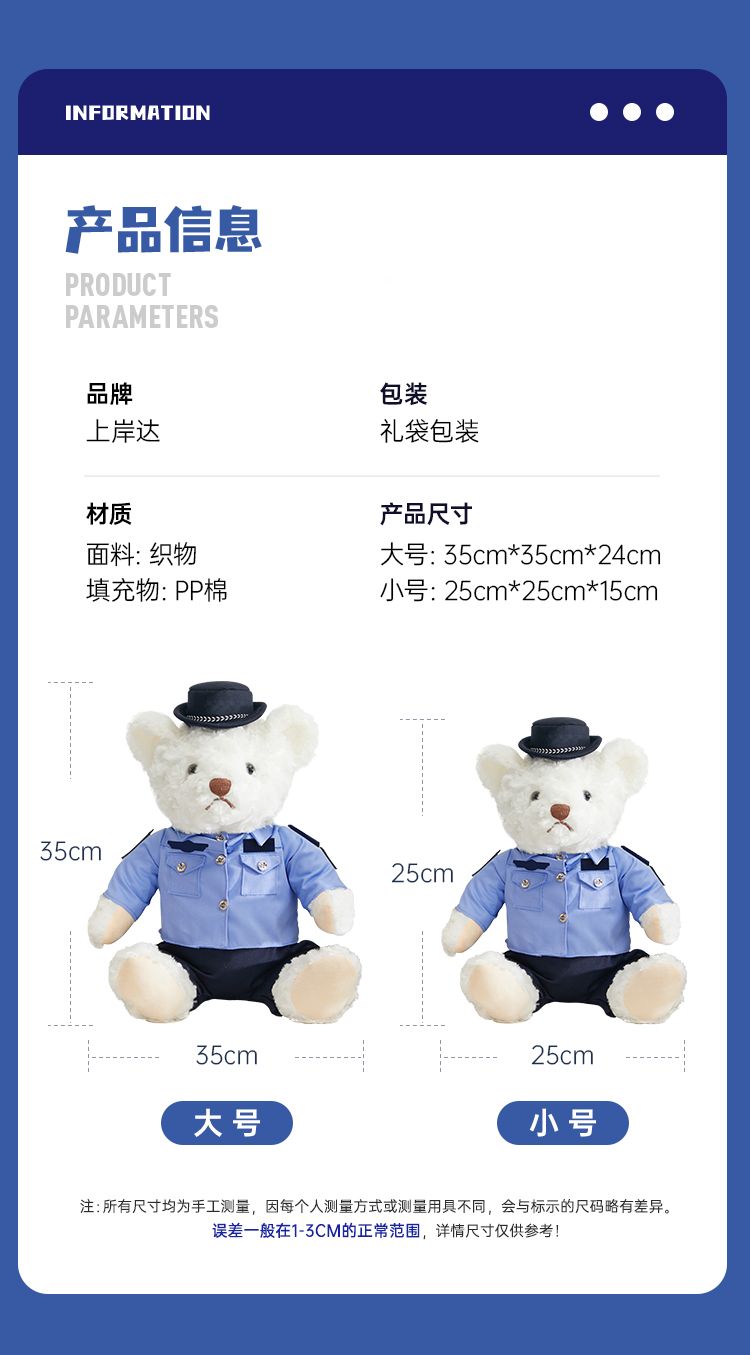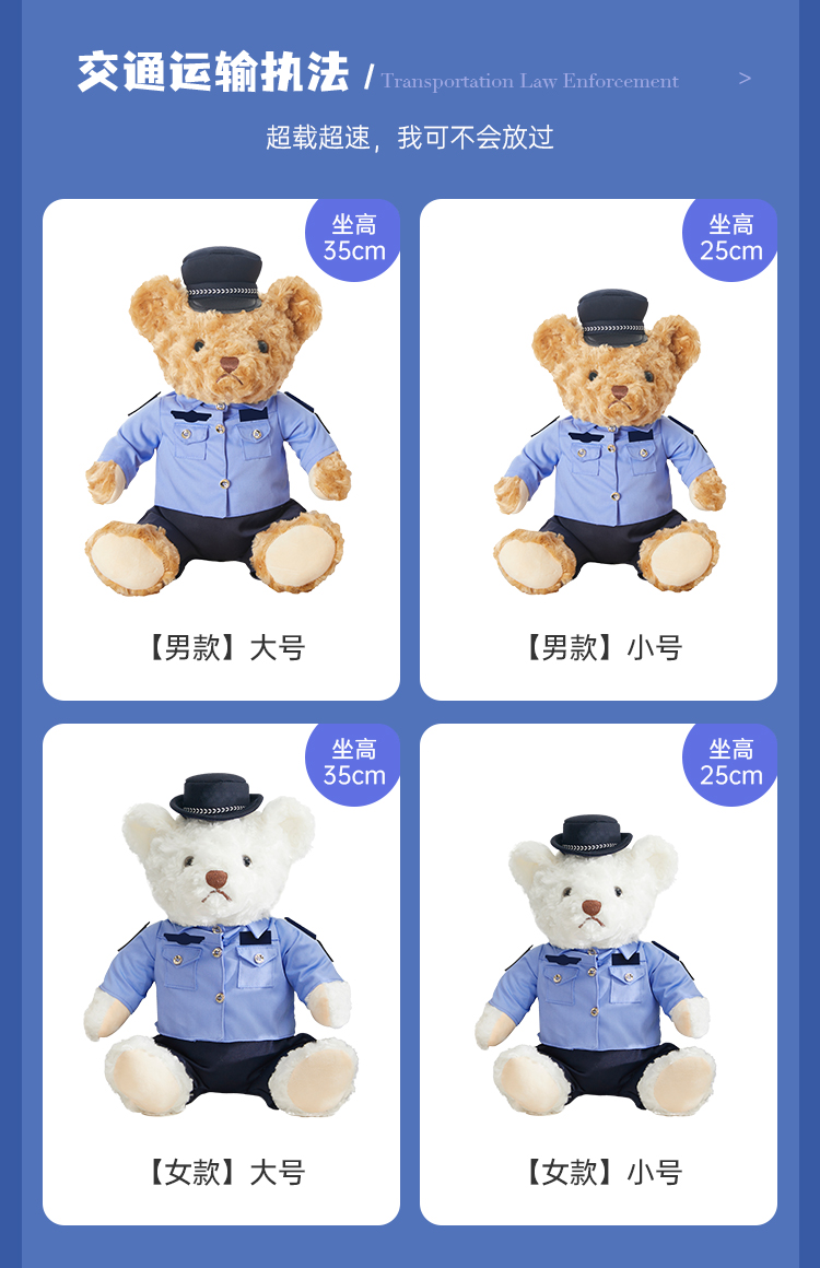 【实付满199送钥匙扣】【综合执法熊】创意坐姿小熊毛绒公仔儿童玩偶摆件