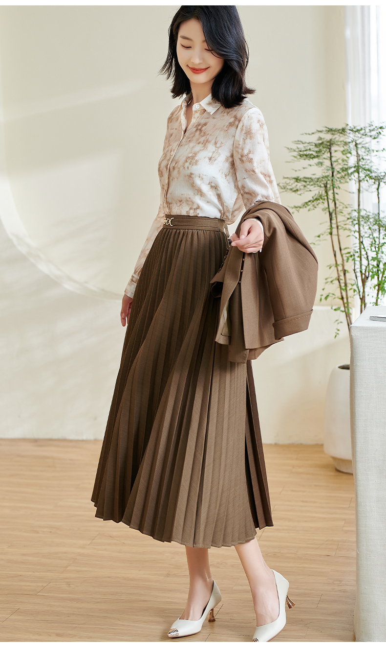 米思阳2025春季新款通勤百搭高腰半身裙洋气修身垂感百褶裙女0335