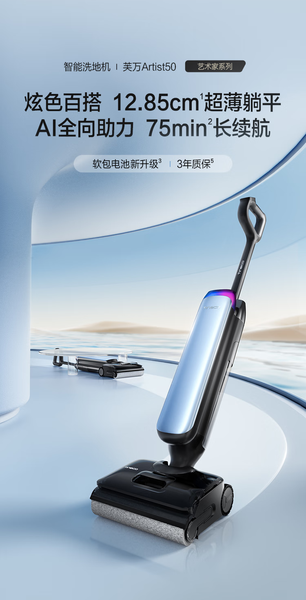 添可(TINECO)智能洗地机芙万Artist 50艺术家 AI全向助力 180°躺平0缠毛75分钟长续航吸拖洗一体全能清洁机 芙万Artist 50