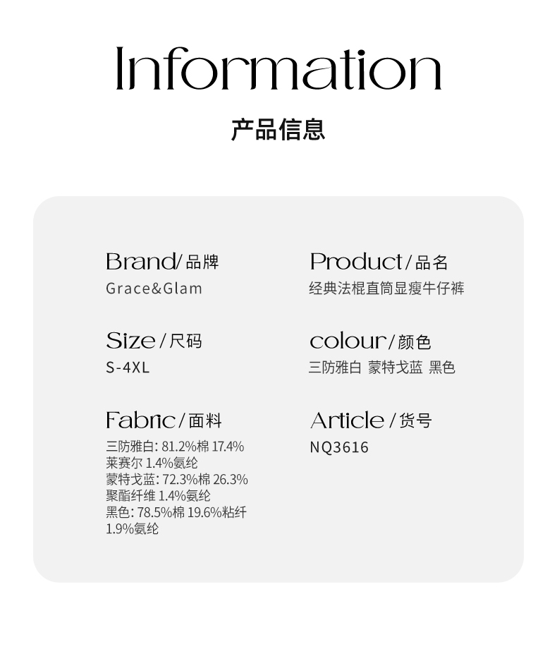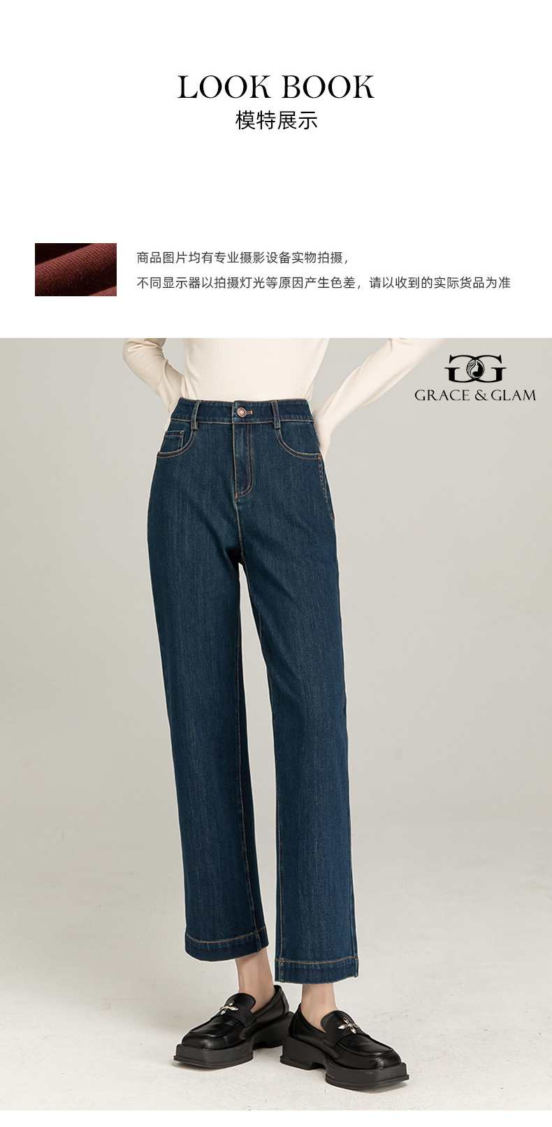 Grace&Glam 经典法棍直筒显瘦牛仔裤