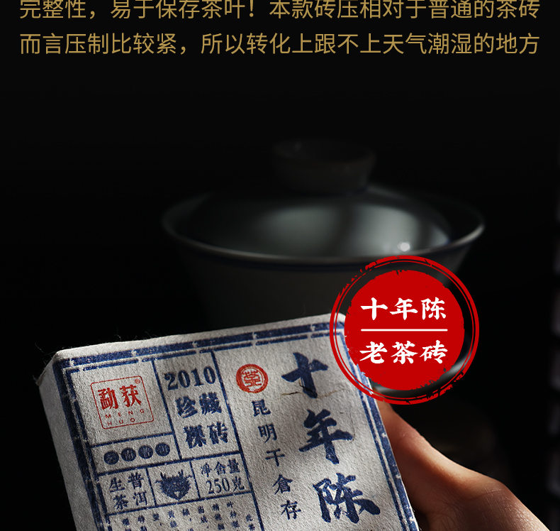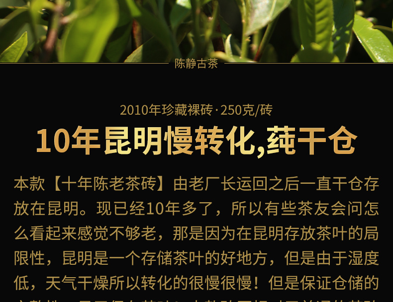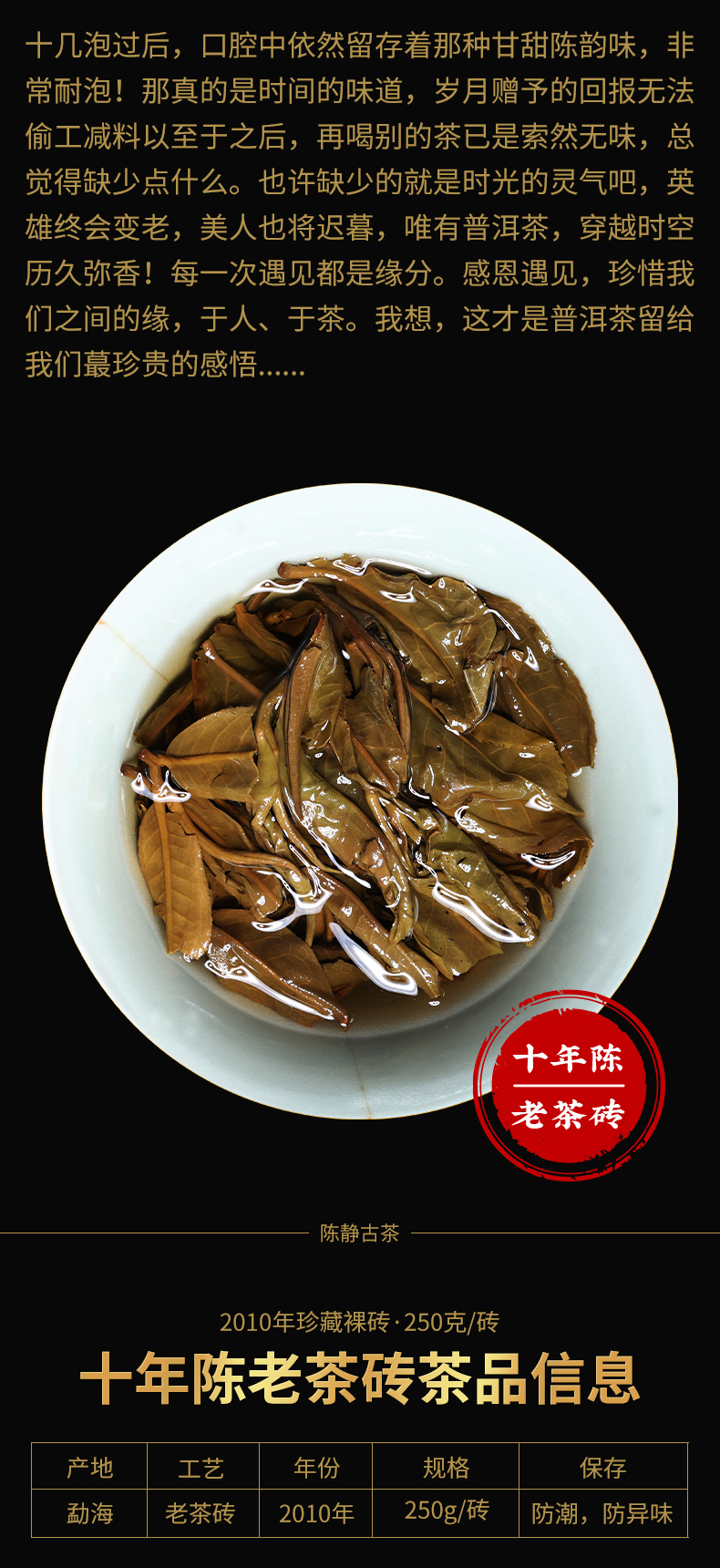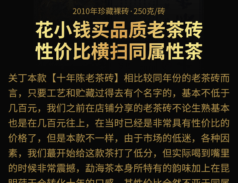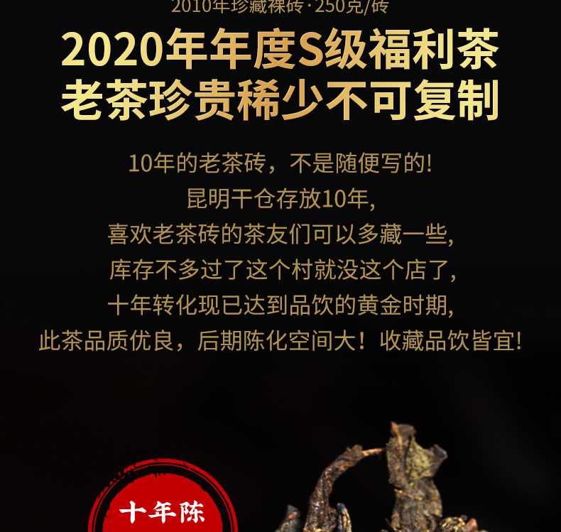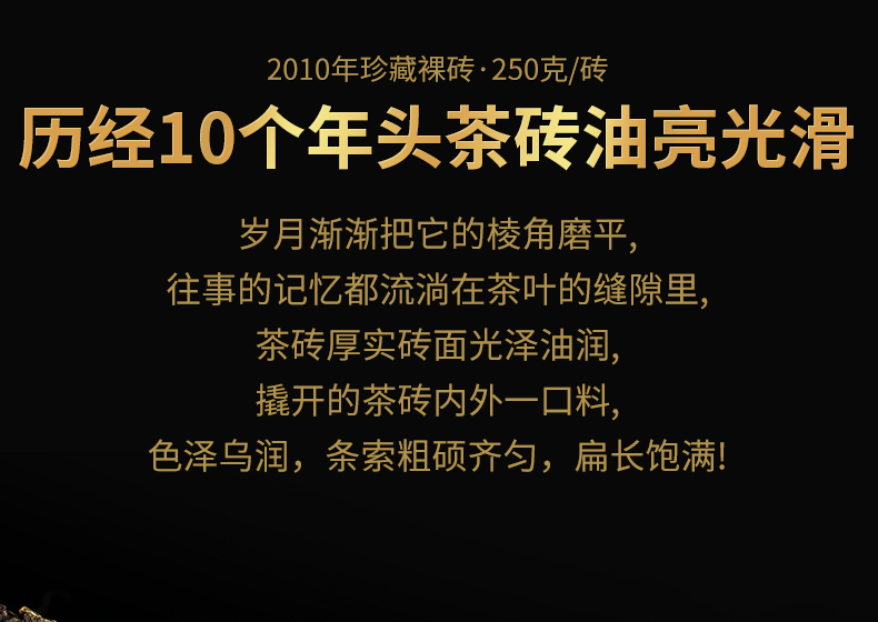 十年老生砖,每片250克,性价比超高,秒杀同级别属性茶。每片仅售38元,买10 送1,超级福利先抢先得!!!