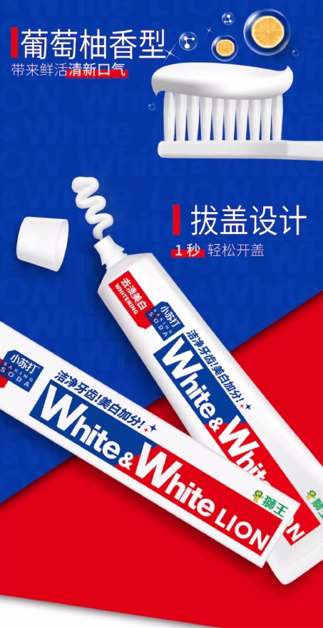 狮王牙膏 大白美白葡萄柚清新口气小苏打含氟1.30