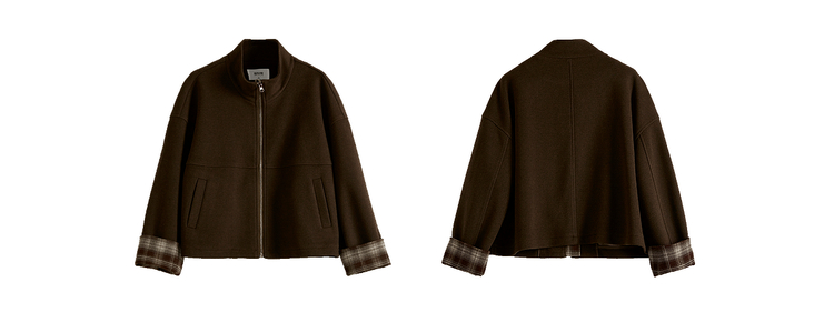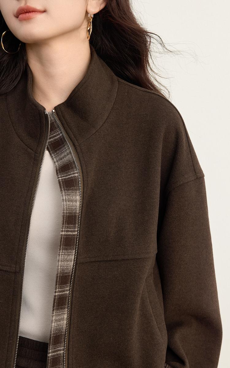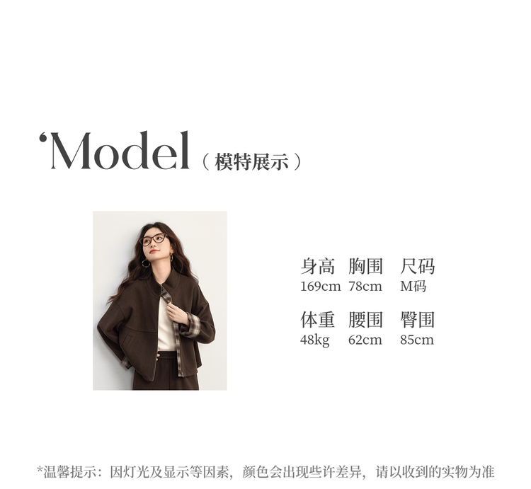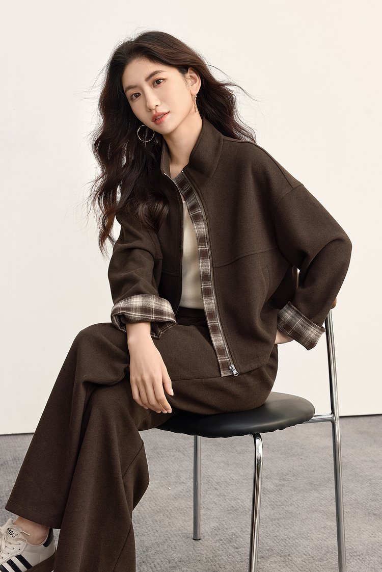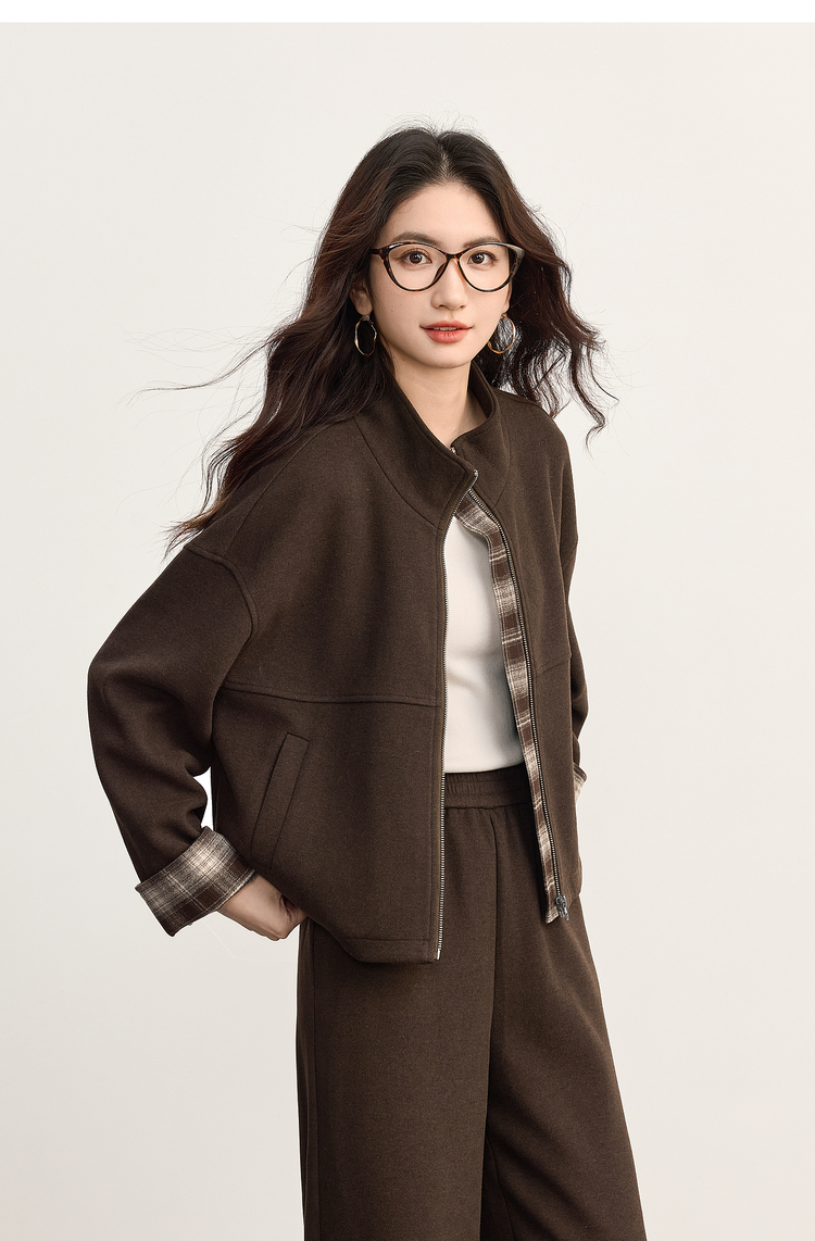 【09/26新品】熙世界巴恩风格纹拼接毛呢外套阔腿裤两件套女秋冬松弛感穿搭套装