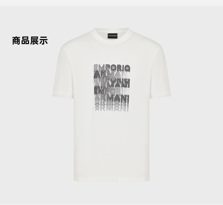 EMPORIO ARMANI 阿玛尼 男士棉质 80 年代效果徽标印花比马平纹针织圆领短袖T恤 白色 3R1TDE 1JPZZ 0101
