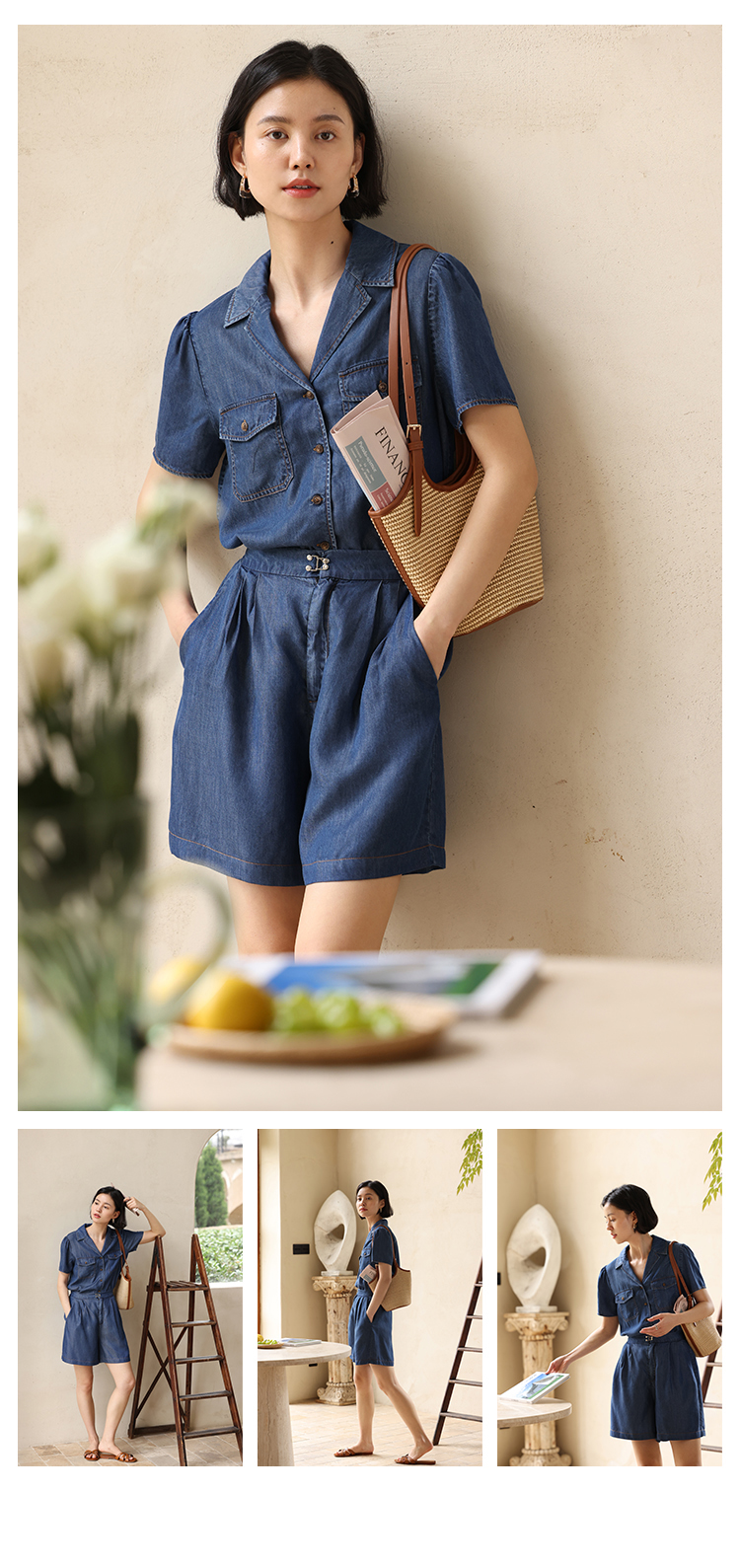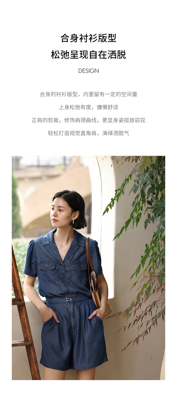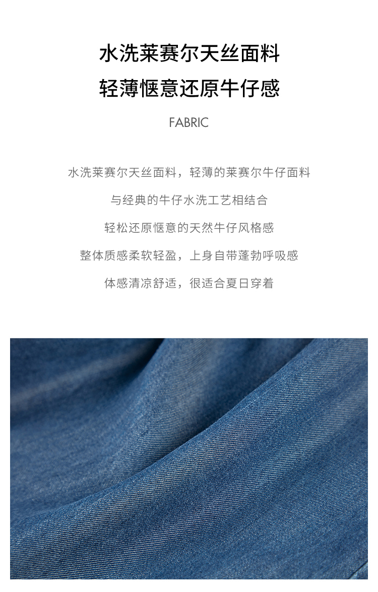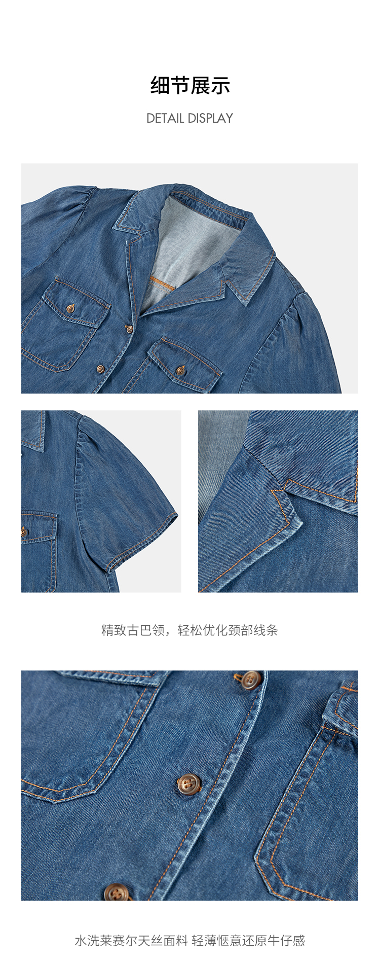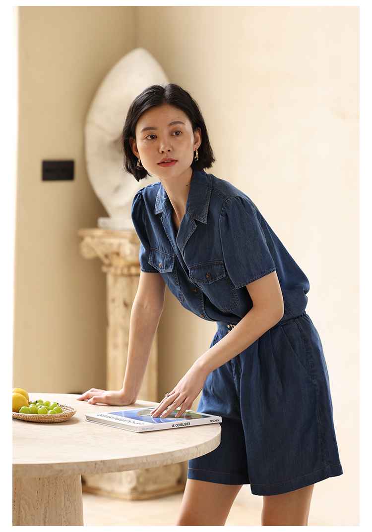 HeyDress天丝复古牛仔短袖衬衫女夏季法式古巴领衬衣休闲薄款上衣