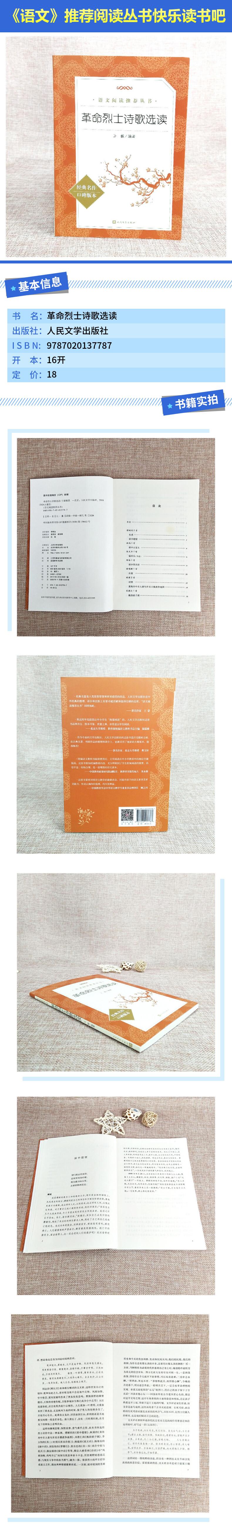 编著的《革命烈士诗歌选读》是一部革命烈士的诗歌选集,他选集了1927年到1949年间革命烈士的部分诗作。这些诗歌有着独特的历史价值和审美价值。附有“导读”和“知识链接”,以帮助学生更好地理解本书,深入浅出地介绍该书的有关情况。本书版本完善,注释详尽,译文准确,适合中小学生阅读。