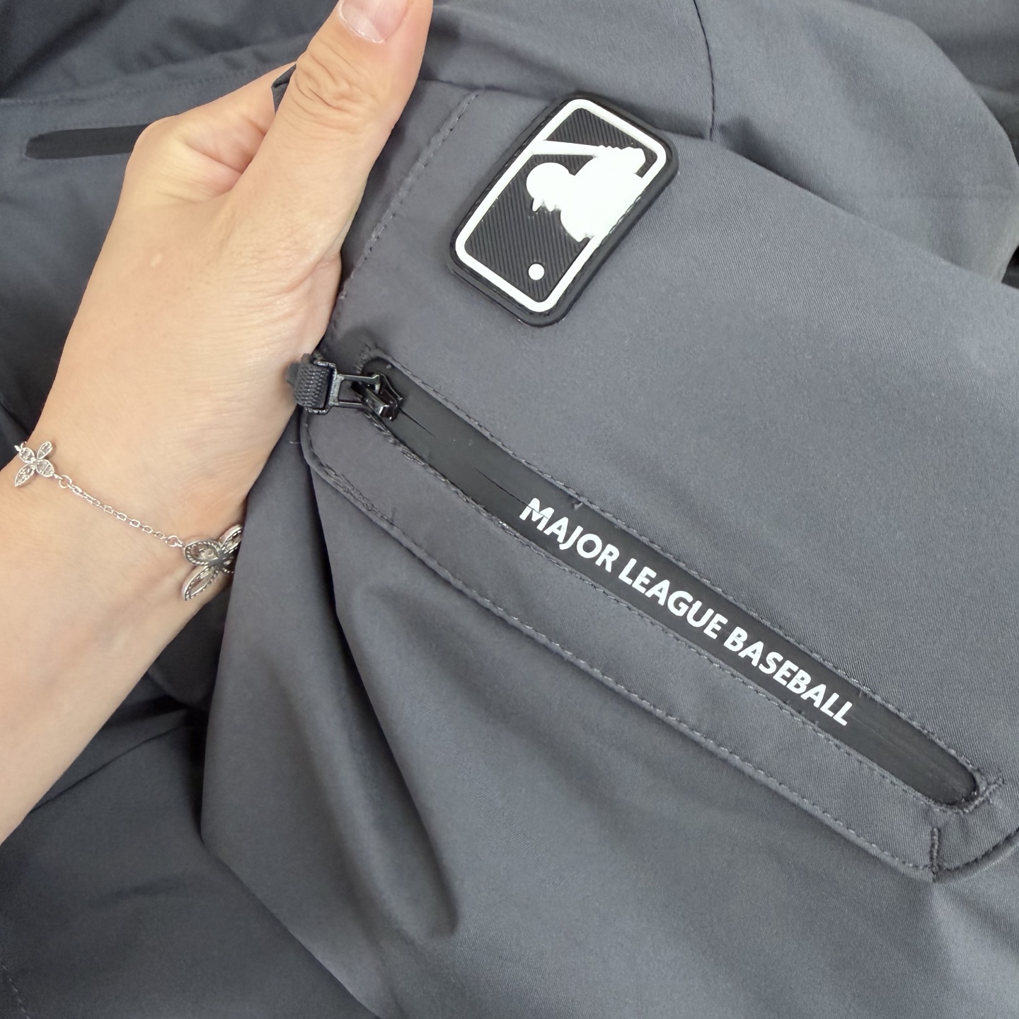 胸口重工贴布“刺绣”MLB标志性的NY logo,袖臂插袋饰有经典的硅胶标,品牌辨识度极强。