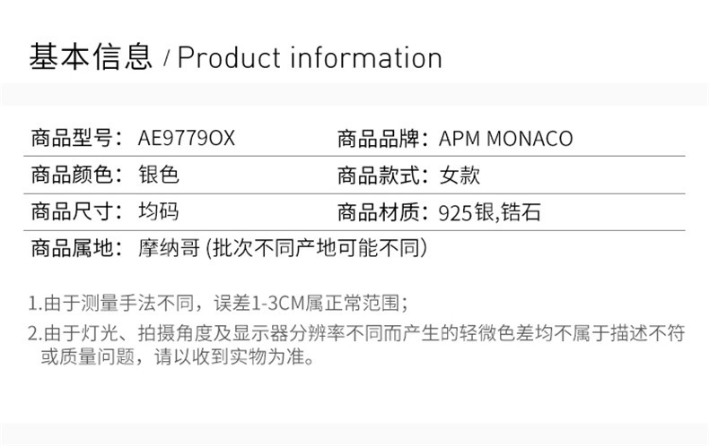 APM MONACO 单只镶钻耳骨扣 AE9779OXJPY带授权招加盟代理