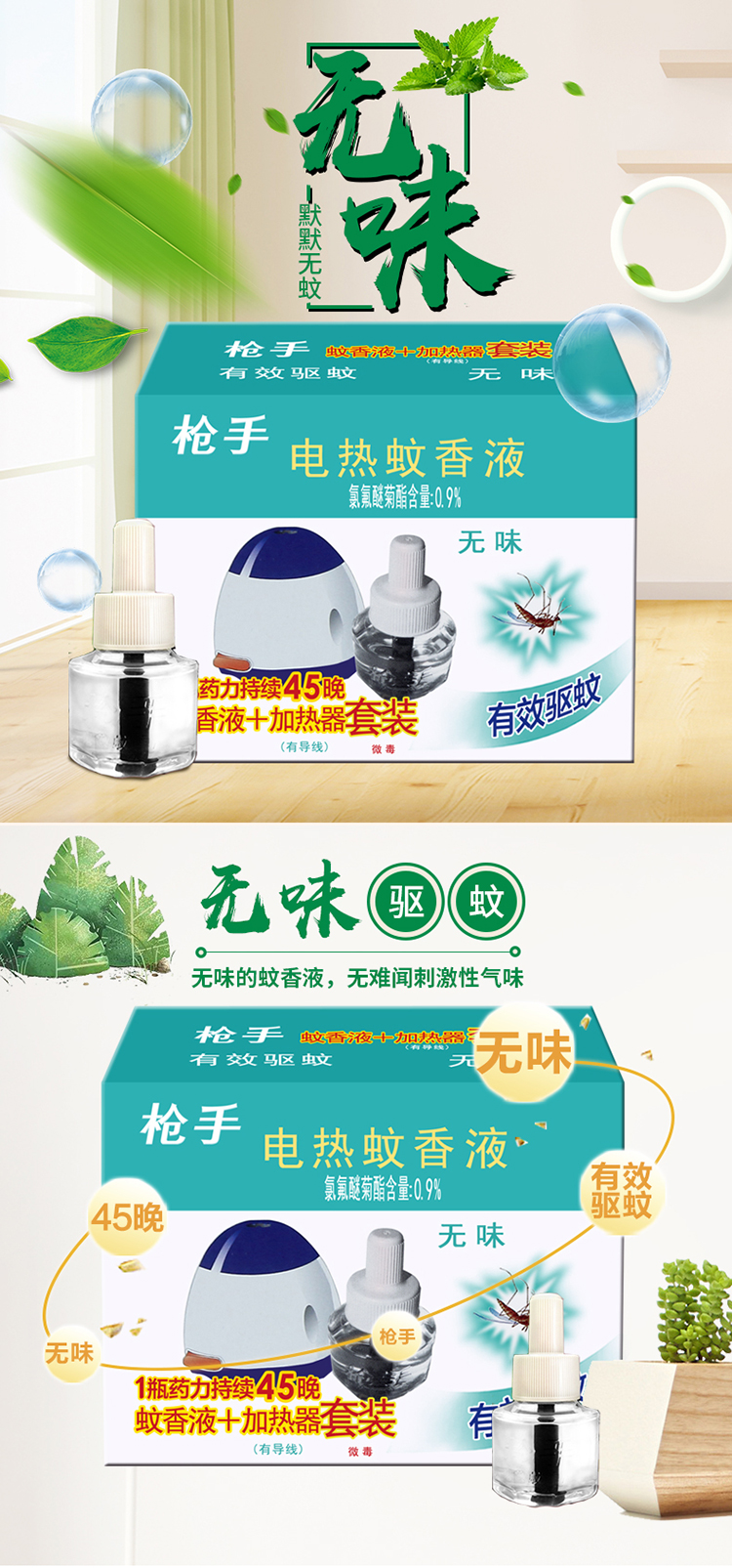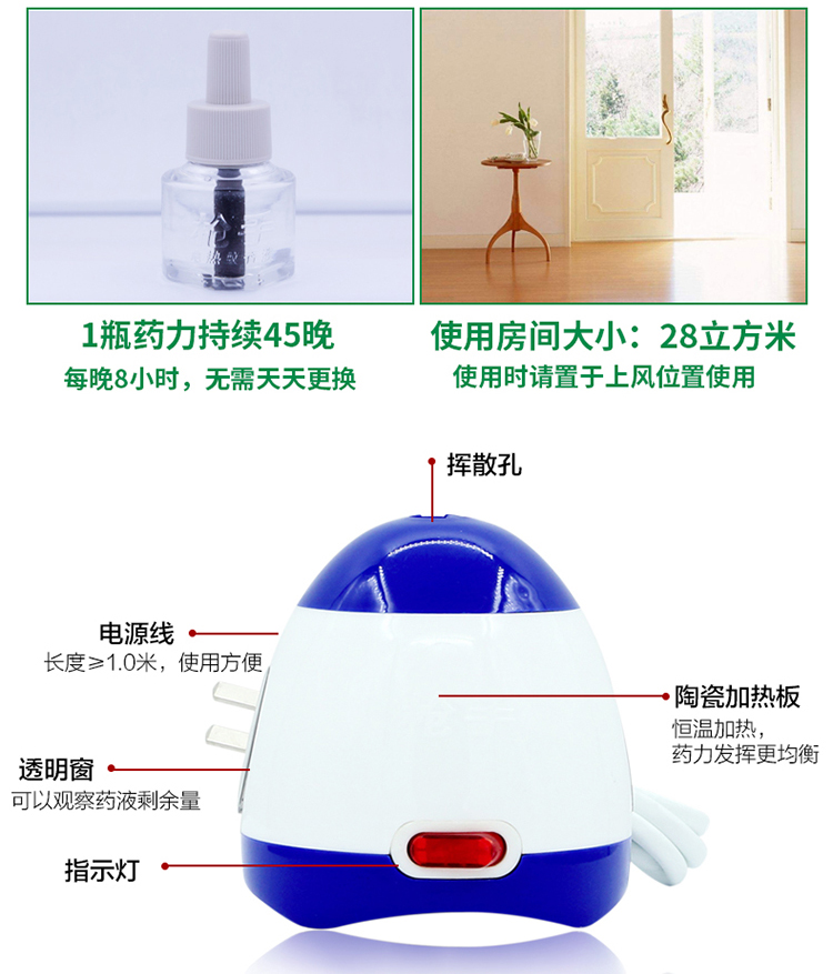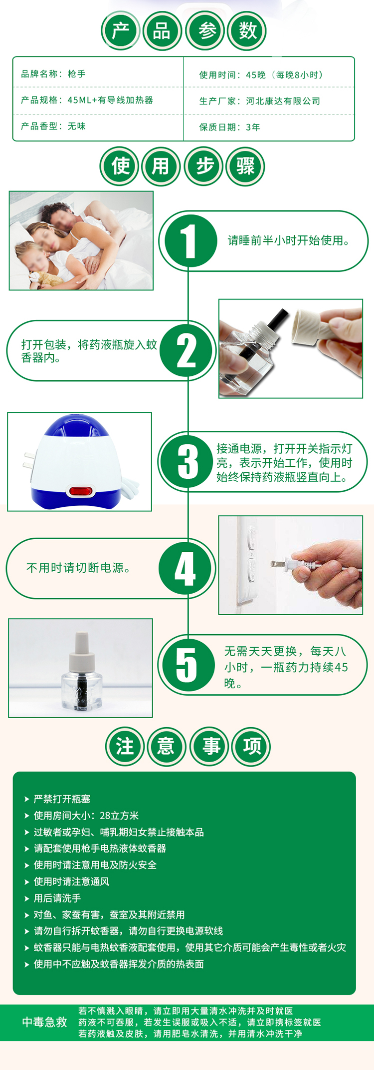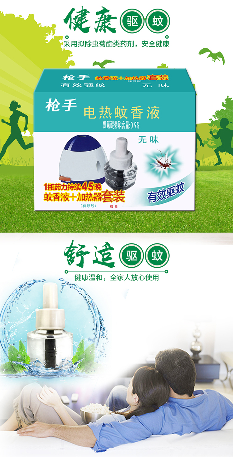 枪手 电热蚊香液套装 有导线 无味 1器+1液 拖线式 无香型 驱蚊液 电蚊香